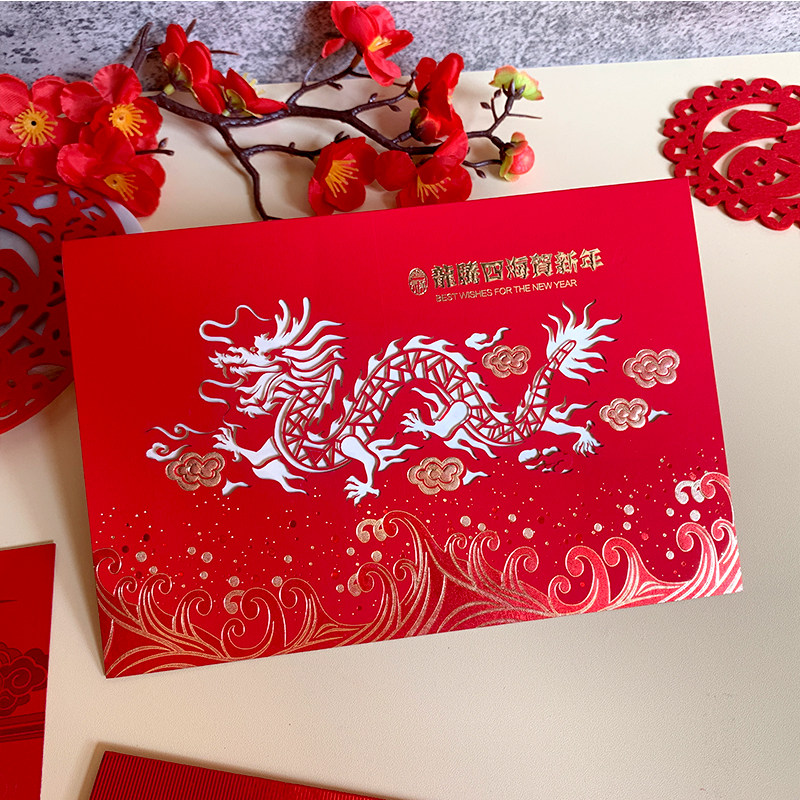 2024 New Year of the Dragon Lunar New Year Card New Year's Day Business blessings Creative Cut Paper New Year's Cards Corporate Custom Print-Taobao
