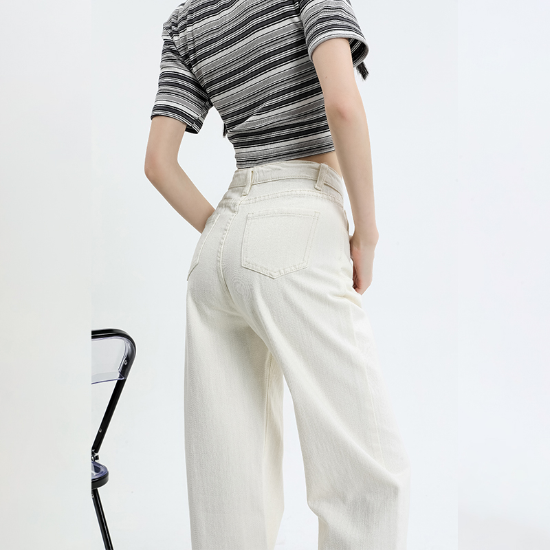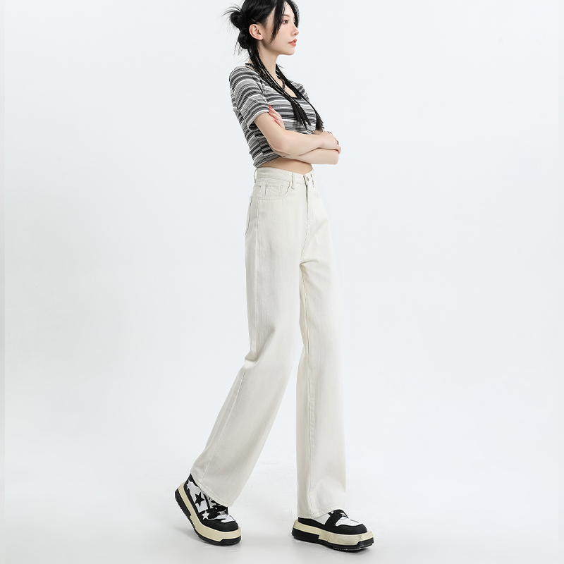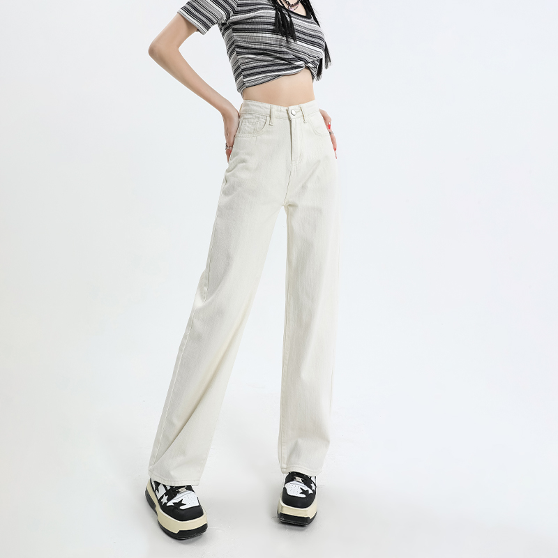Rice white small sub narrow version straight cylinder jeans female autumn winter high waist loose feeling wide leg towering pants-Taobao