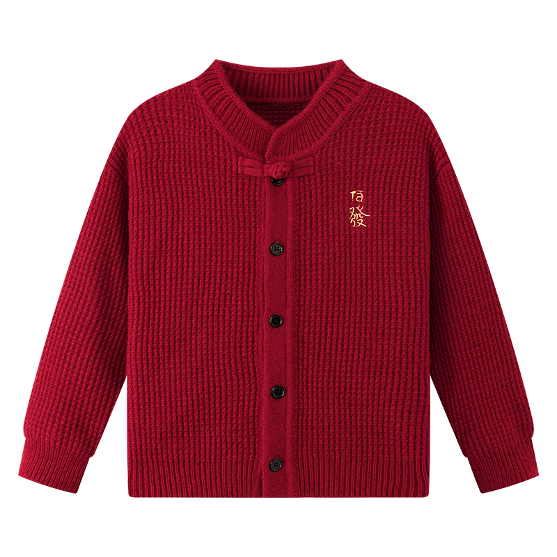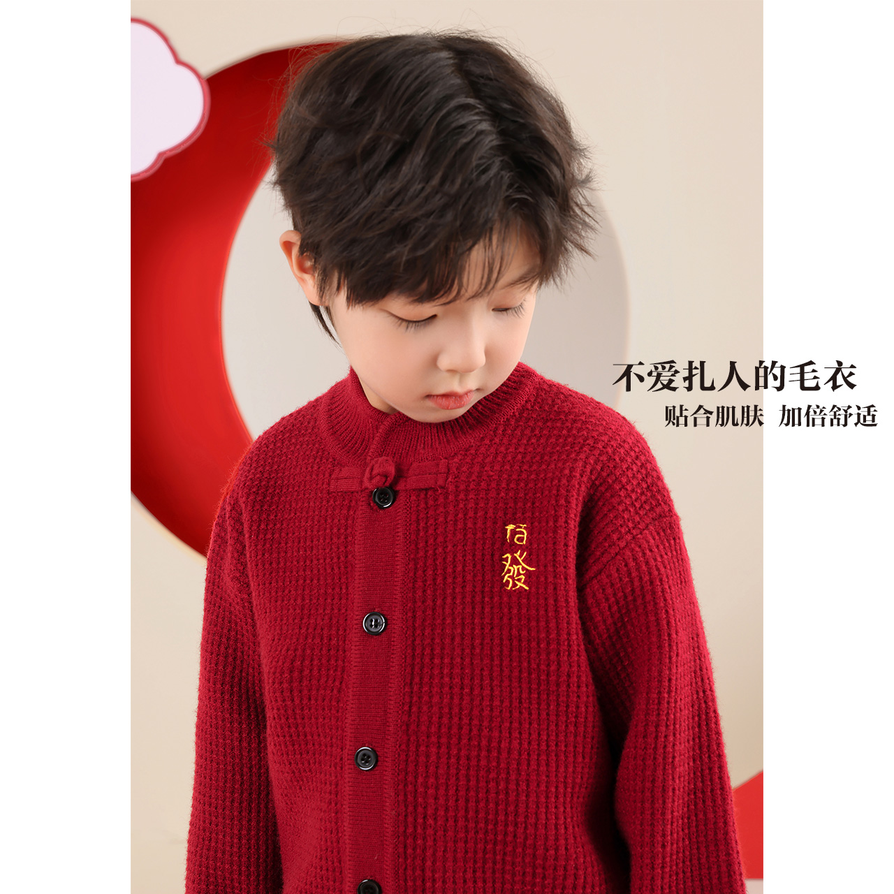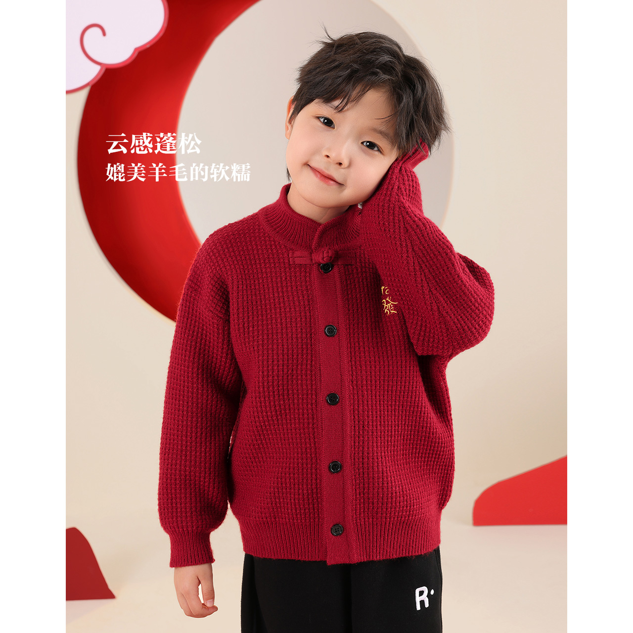 Left West Boy Clothing Boy Sweater Red Beiyr Clothing Knitted Cardiovert Jacket Children 2023 New Year Winter Tidal Wave-Taobao