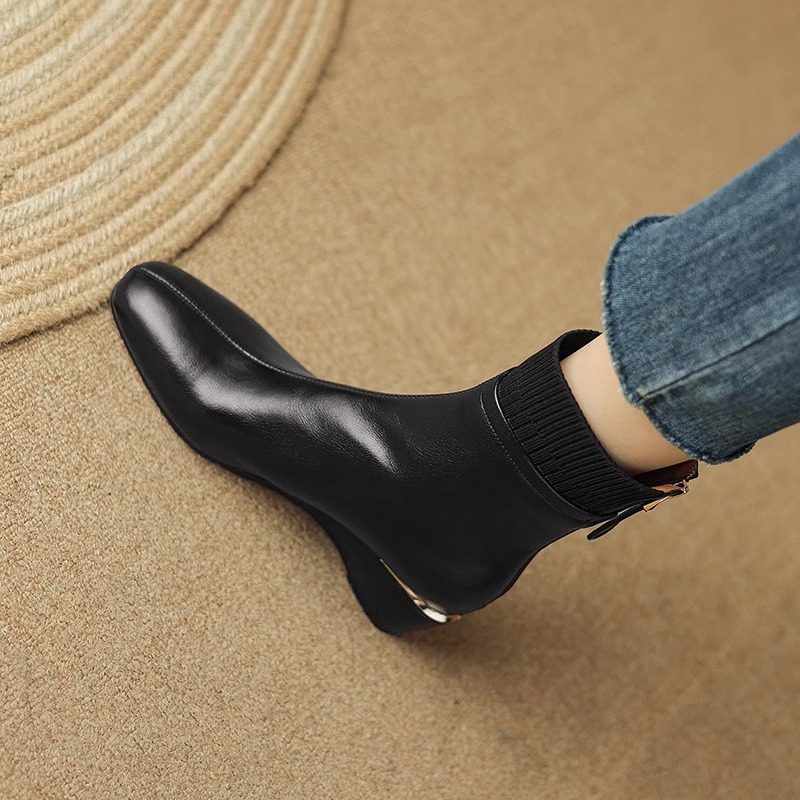 Luss uoso (italian light extravaganza)⭐Show pistachio ~ 5 5cm genuine leather short female elastic force French style wind-Taobao