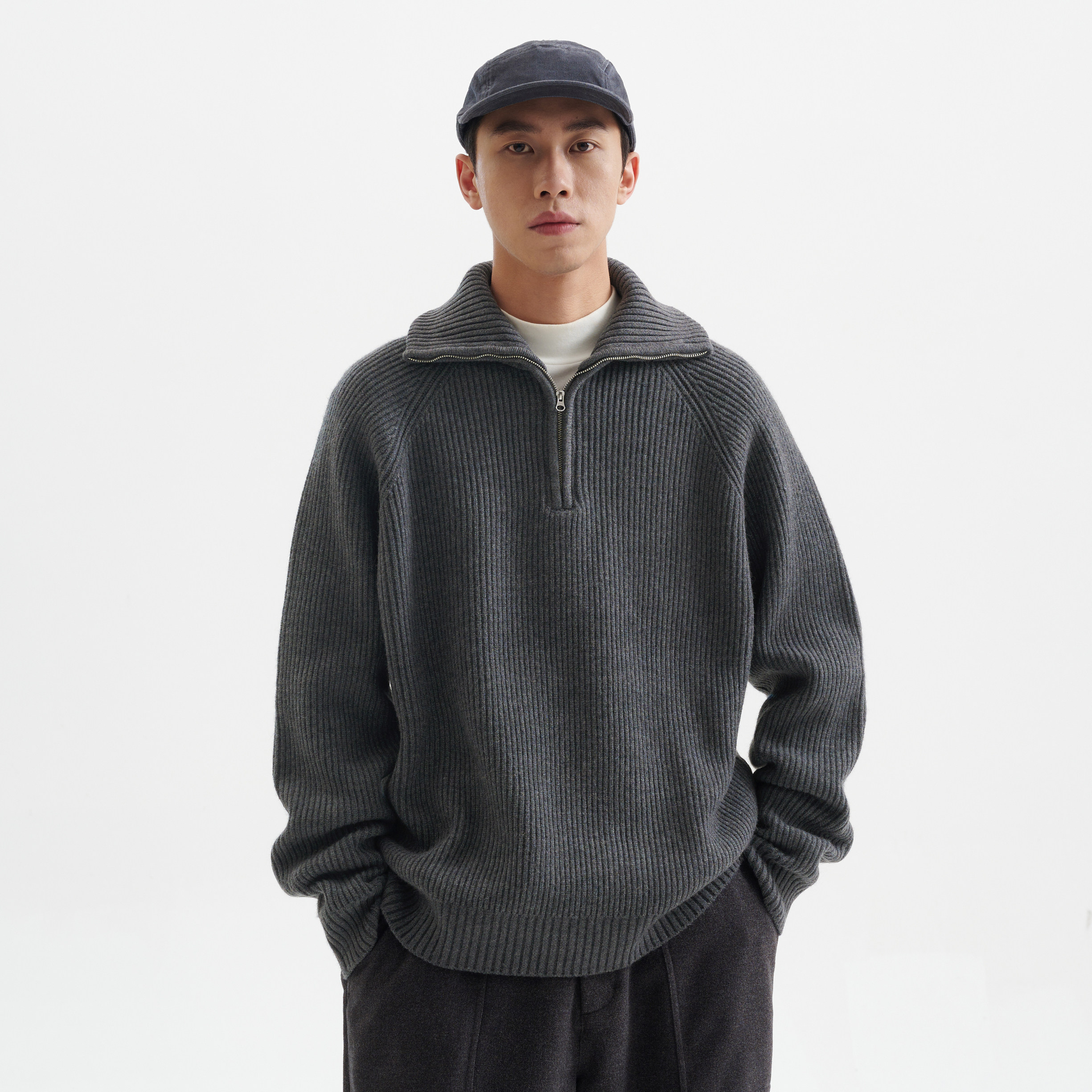 BUTTBILL 23AW retro high collar semi-zipped sweater lovers needle weasel-jersey turtlenecks underjersey man-Taobao