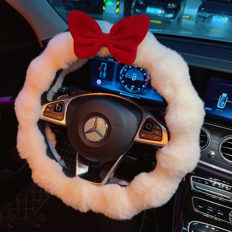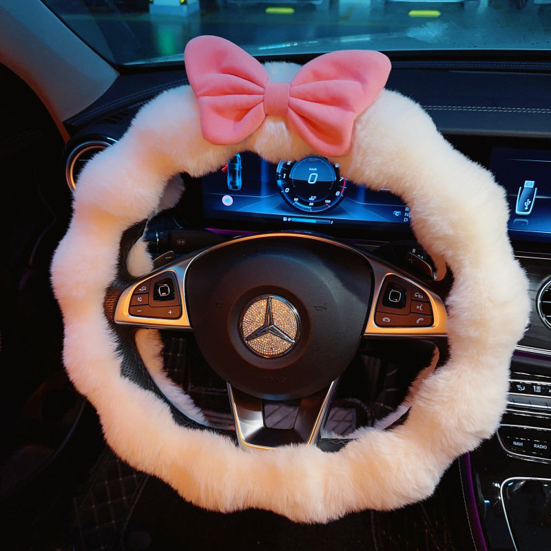 Net Red Advanced Sensation Goddess Winter Plush Warm Car Steering Wheel Sleeve Non-slip To the Cute Woman Car Interior-Taobao