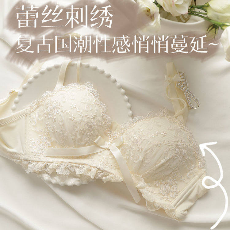 Lingerie Female Breasts Poly-breasted Girl bra No steel ring No steel ring to collect Drooping Pure Desire Bra Suit Thin-Taobao