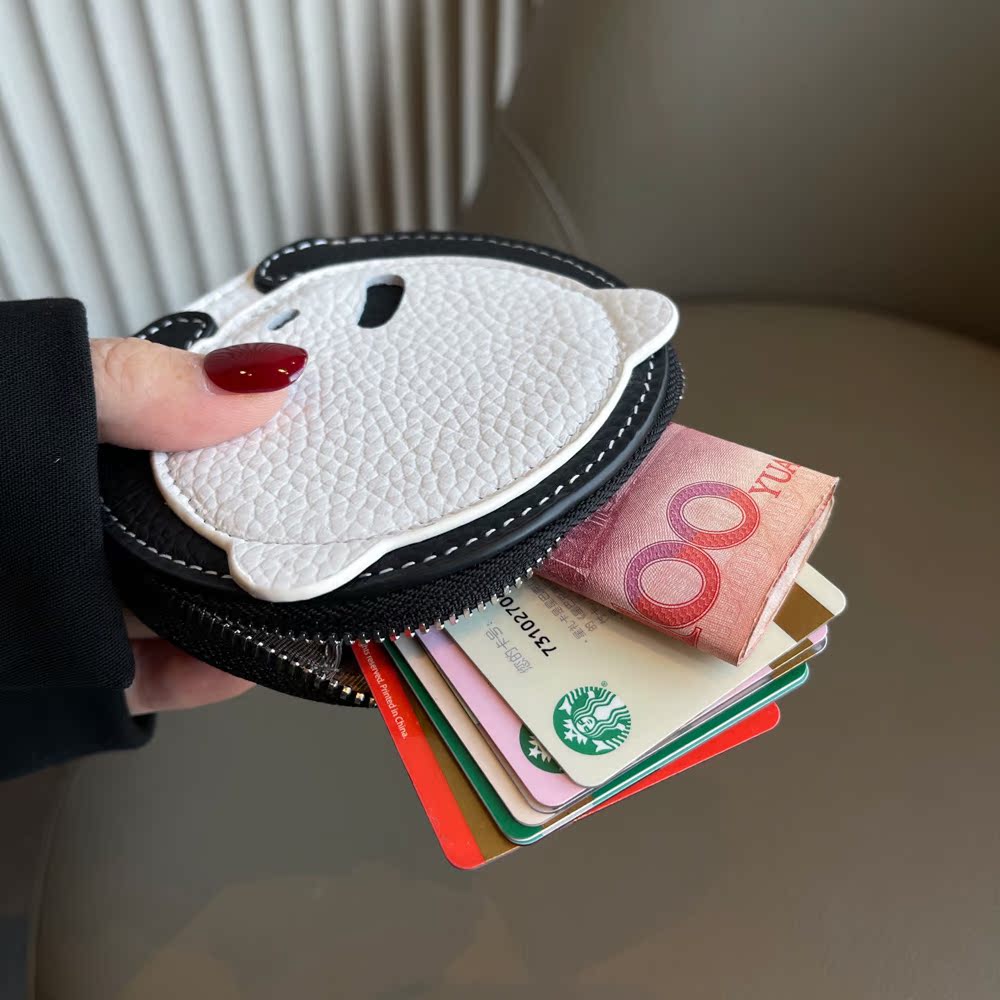 Panda Pattern Ultrathin Zero Wallet Lady Head Layer Cow Leather Coin Bag Fashion Cute Zipper Mini Wallet Thin-Taobao