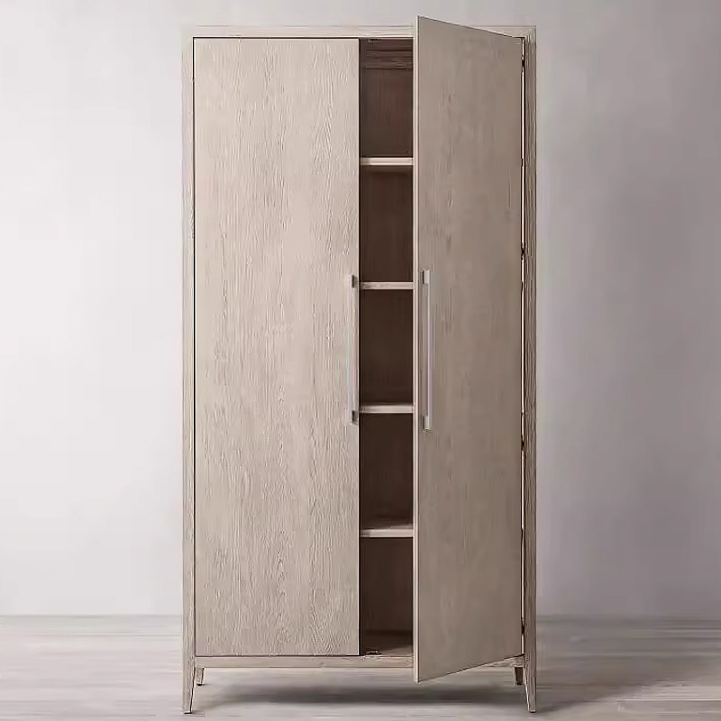 American RH American Countryside Solid Wood Retro Double Door Wardrobe Fan-style Oak Lockers Two Doors Closet Bedroom Clothing Cap-Taobao