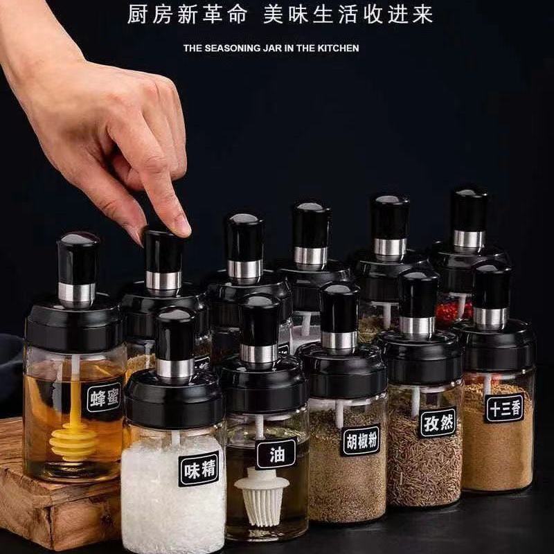 Glass Seasoning Bottle Oil Pot Seasoned Jar Salt Jars Sauce Vinegar Bottle Kitchen Home Seasoned Bottle Suit Seasoning Box-Taobao