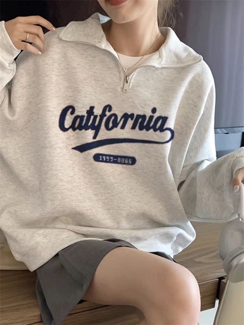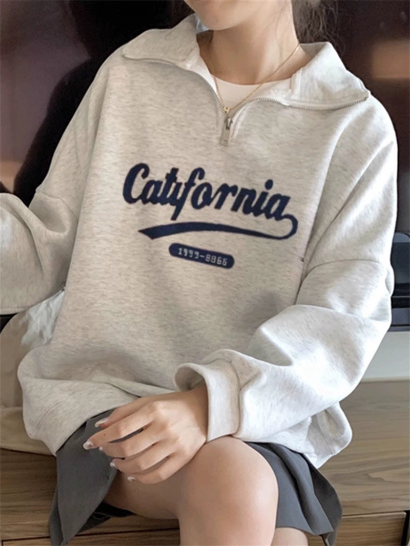 Turn over half zipped sweatshirt woman coat 2023 new loose long sleeve blouses-Taobao