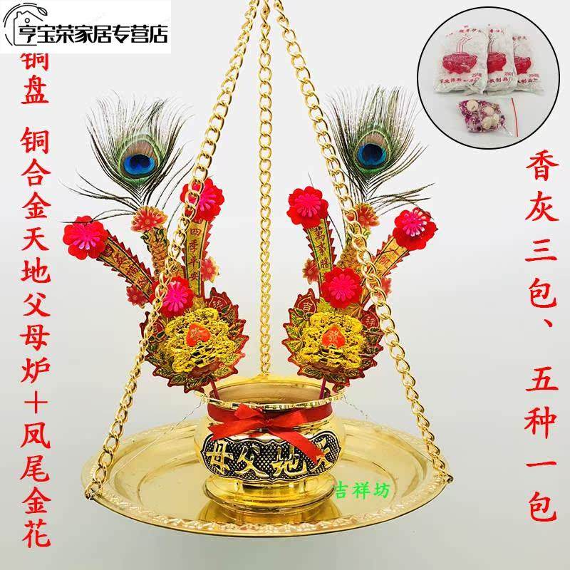 Copper Sheet Red Earth Furnace Chain Detachable with red disc Copper Earth Furnace With Stainless Steel Gold Pan Copper Earth Furnace 6 Inch Copper Alloy Earth Furnace With Copper Disc 6 Inch Copper Alloy Ground Furnace Cedar Wood Heaven And Earth Furnace Frame