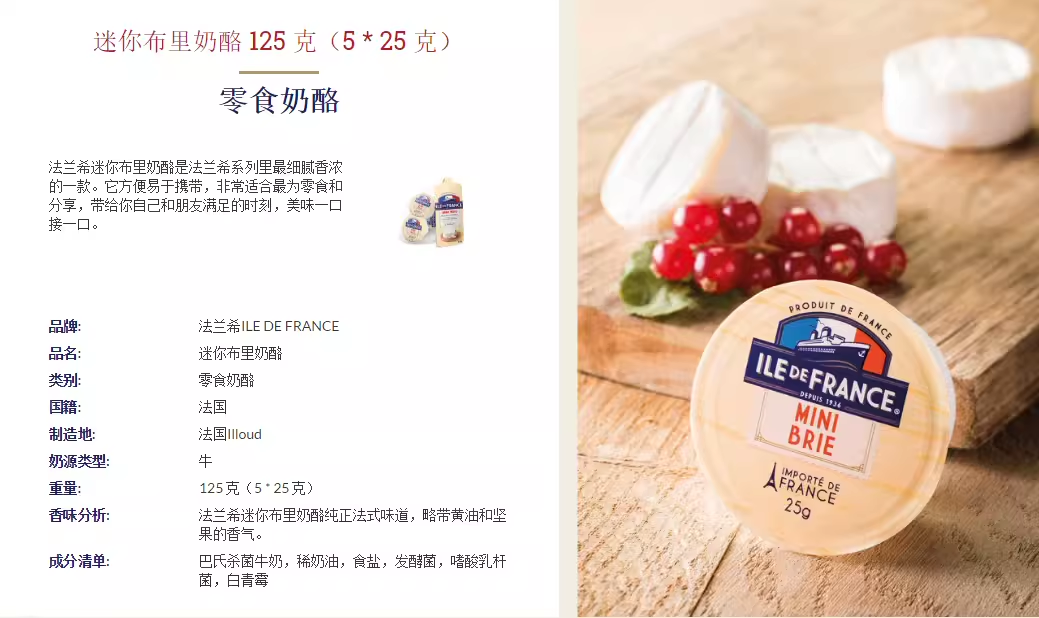 Flange Himini brie cheese 125g Good date Franch Little Brie cheese 125g Good date flange Hibrian cheese Good date Franch Little Golden Moon Cheese Good Date