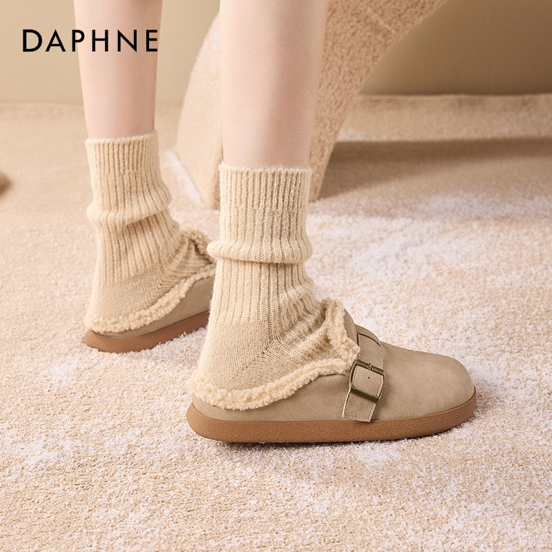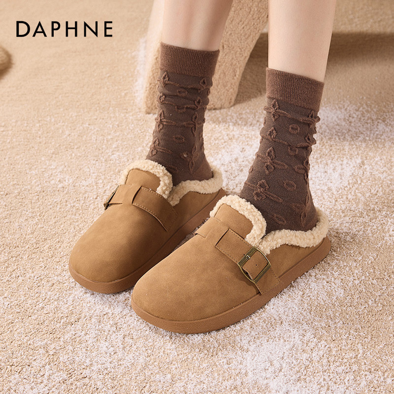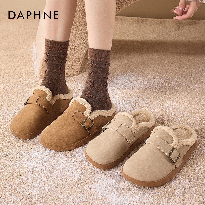 Daphne Burken slippers female plus suede 2023 new winter pregnant women Mao woolen shoes thick bottom Baotou cotton slippers outside wearing-Taobao