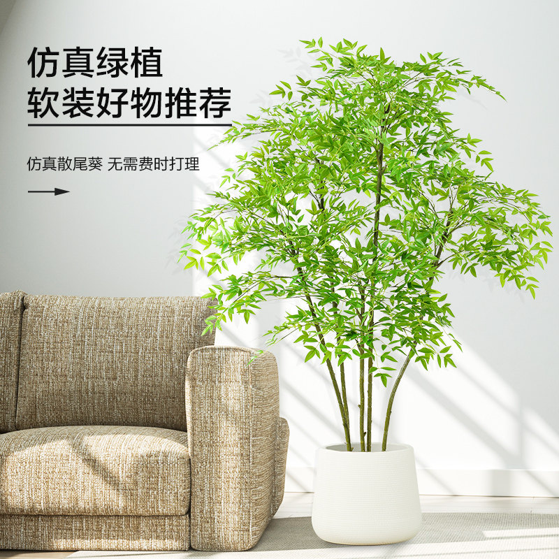 Simulation Green Plant South Tianzhu Indoor Decoration Plant Fake Potted Plant Swing Piece Home Landing Tree Bionic Light Extravagant and Scenery-Taobao