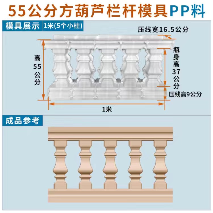 Square gourd 55 cm - railing 1 meter (5 small columns) round gourd 55 cm - railing 1 meter (5 small columns) petal type 55 cm - railing 1 meter (5 small columns) wine bottle type 55 cm