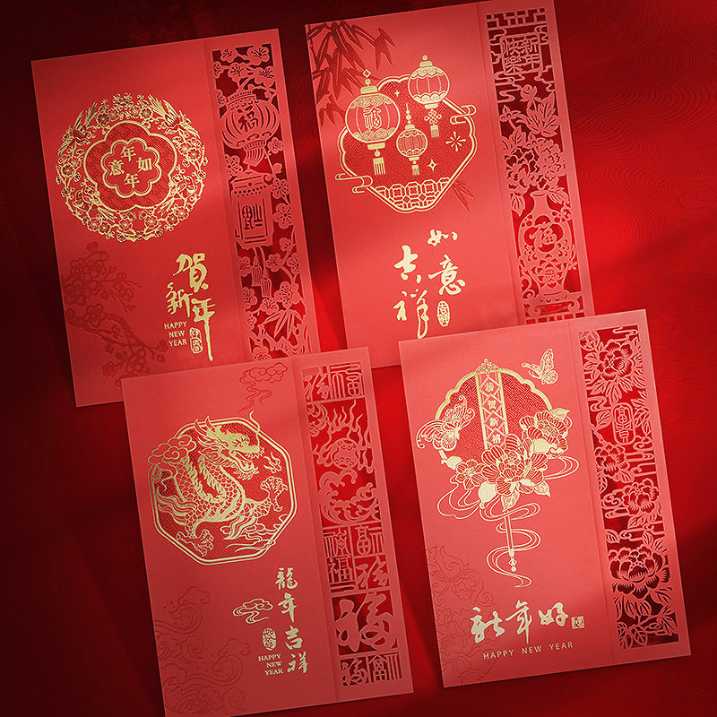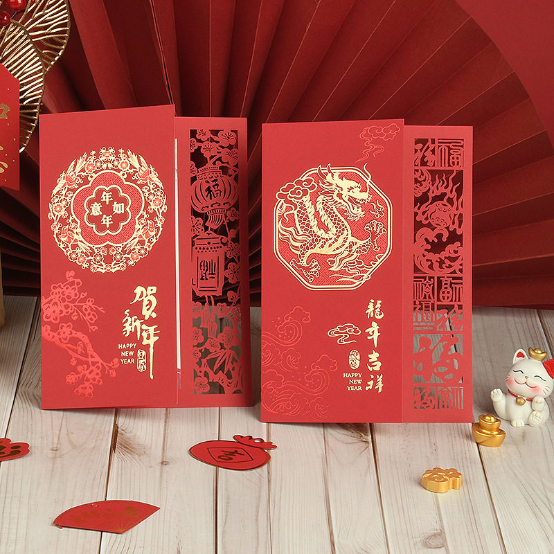 Creative 2024 Dragon New Year Cards Chinese Wind engraving New Year Cards Business New Year's Day New Year's Day Bless Lunar New Year Cards-Taobao