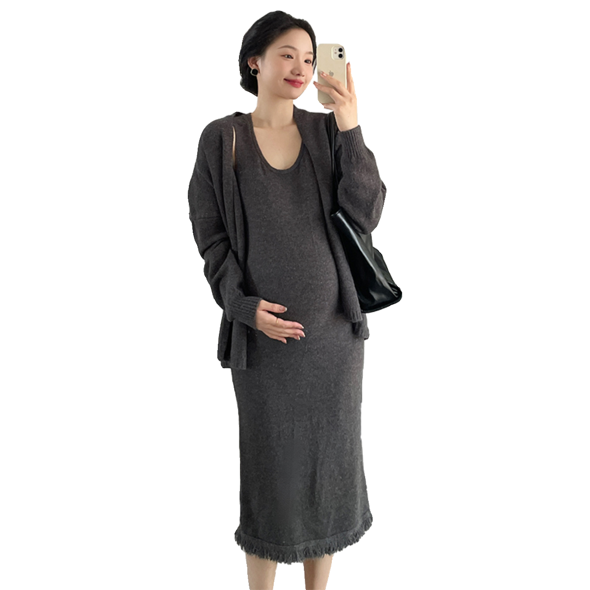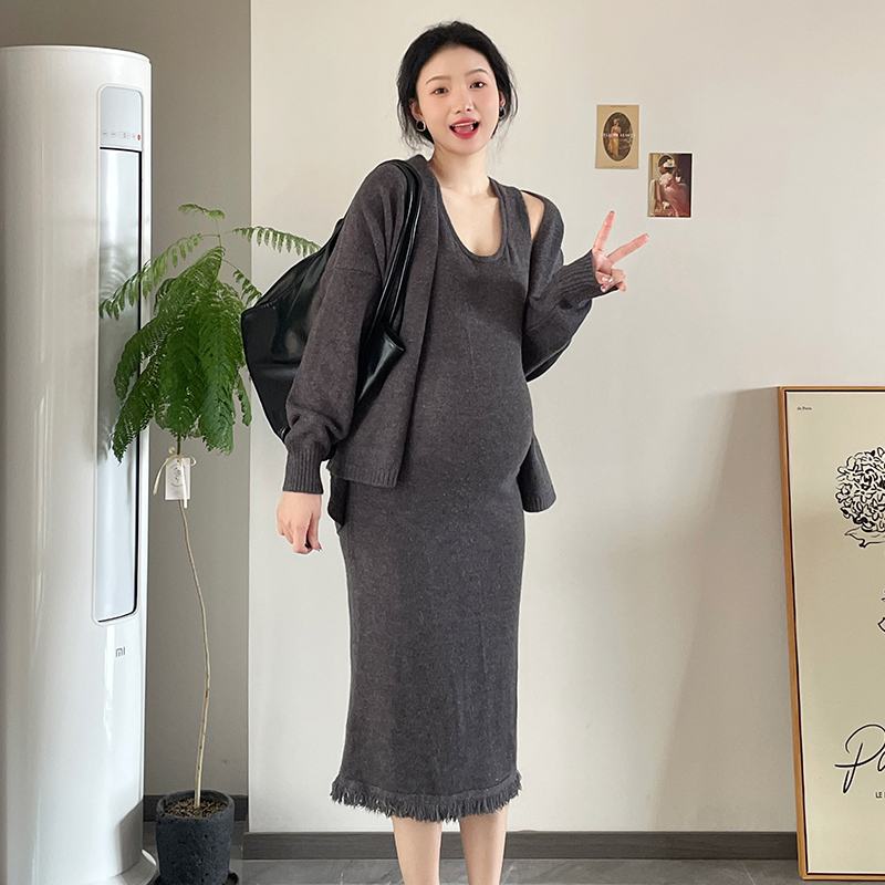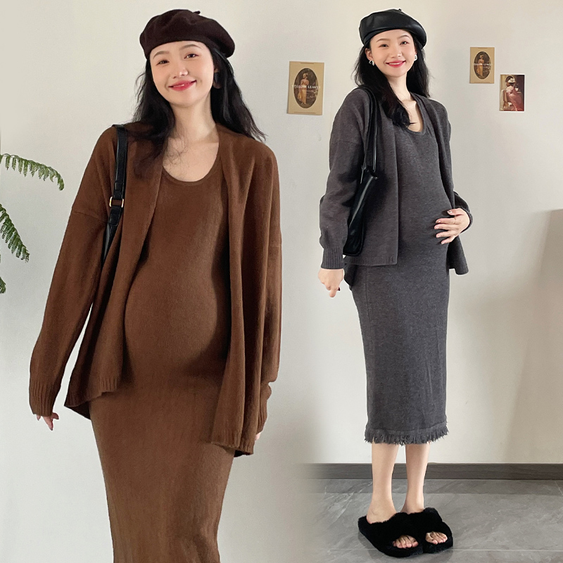 Gestational dress for gestational women Pregnancy Woman Dress Autumn winter knit stream Sulian dress Dress Temperament Sweatshirt Jacket Korean version Two suits-Taobao