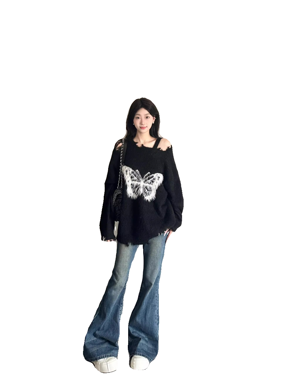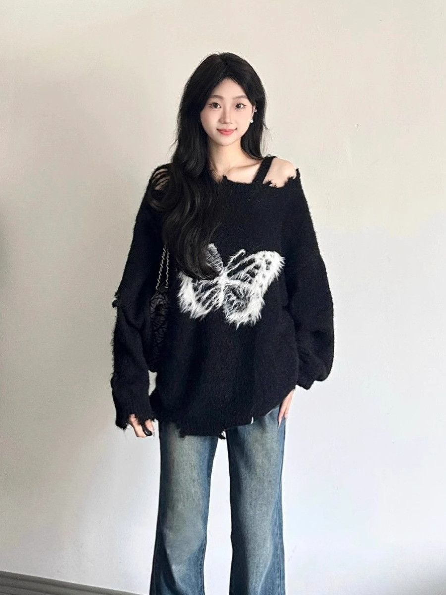 2023 New plush butterfly knot Lazy Wind Sweater Woman Loose Autumn Winter Design Sensation Dash-weaters-Taobao