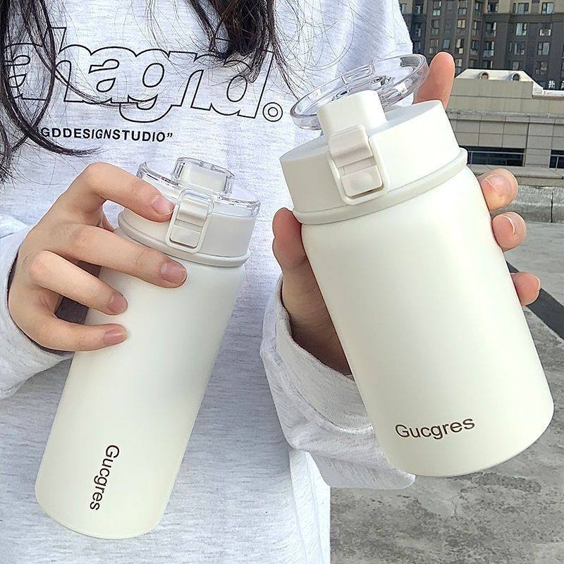 Insulated cup girls 316 stainless steel high face value portable large capacity portable drinking water cup ins double drinking straw cup-Taobao