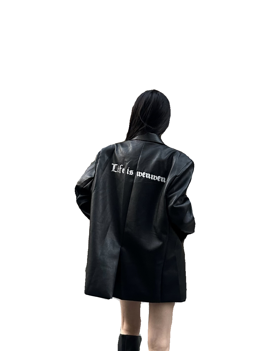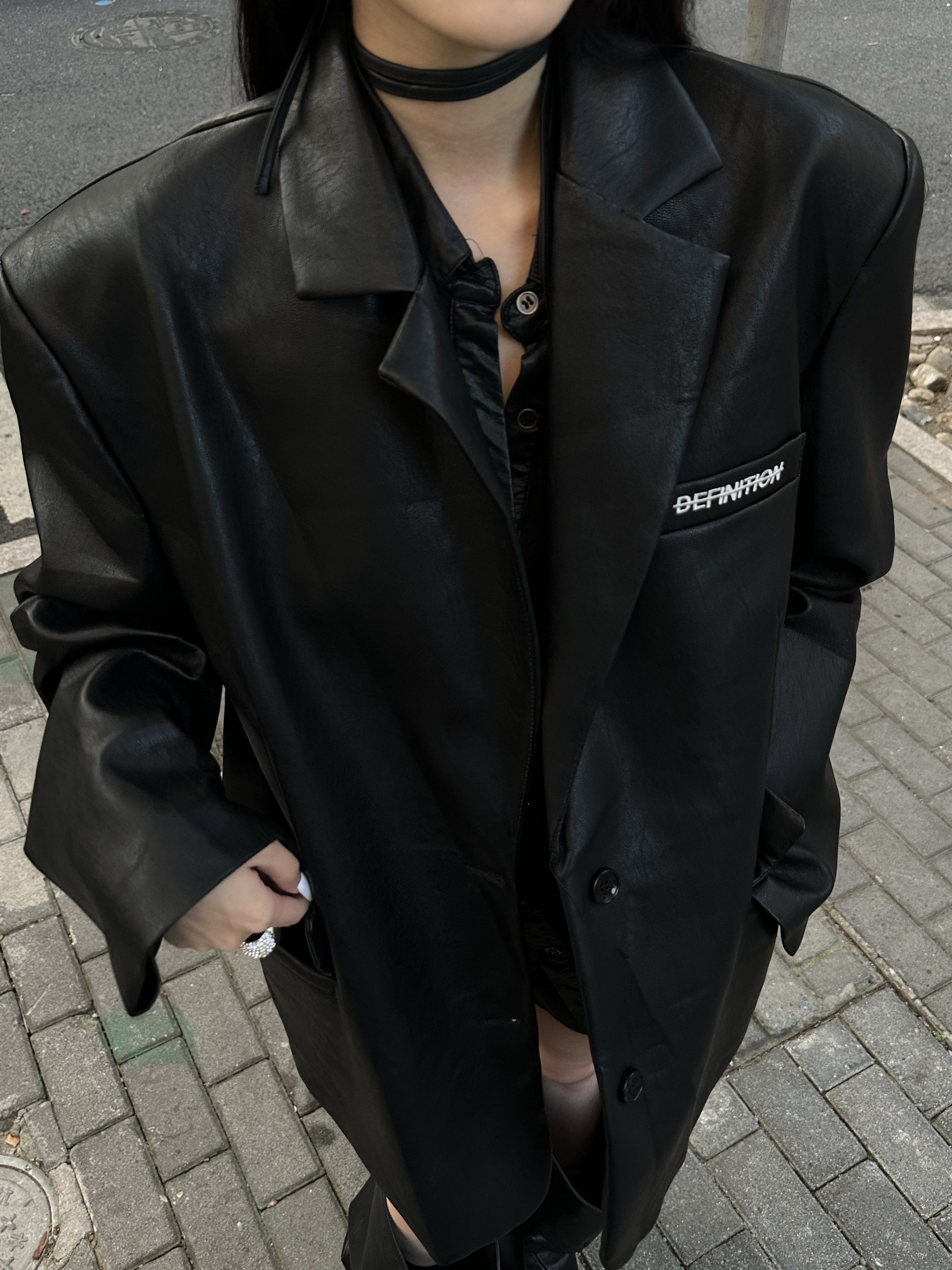 Uekk 2023 autumn winter new black leather coat jacket for men and women street cool and small crowd design sense suit jacket-Taobao