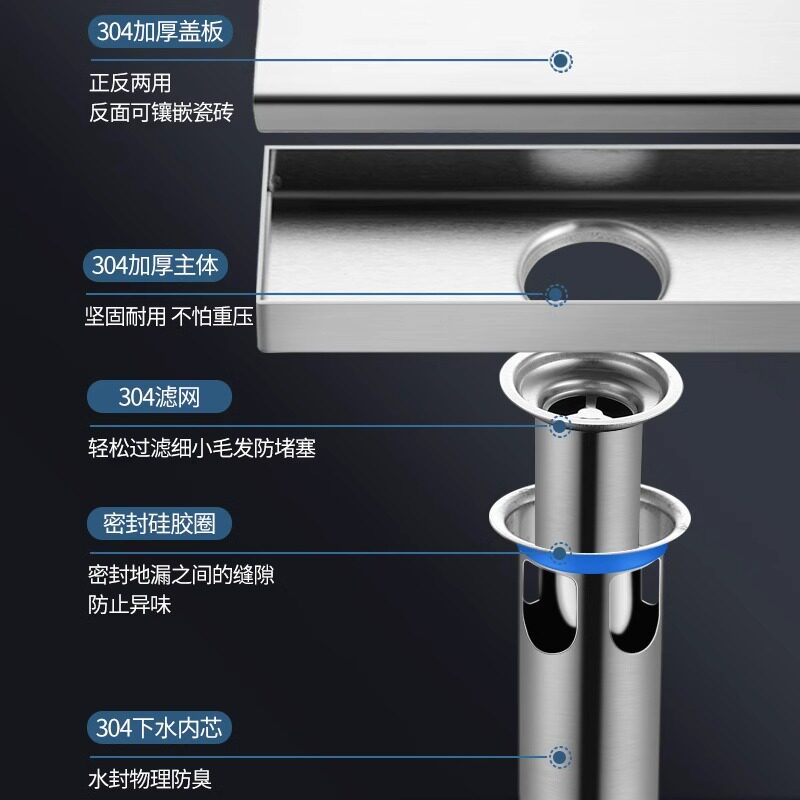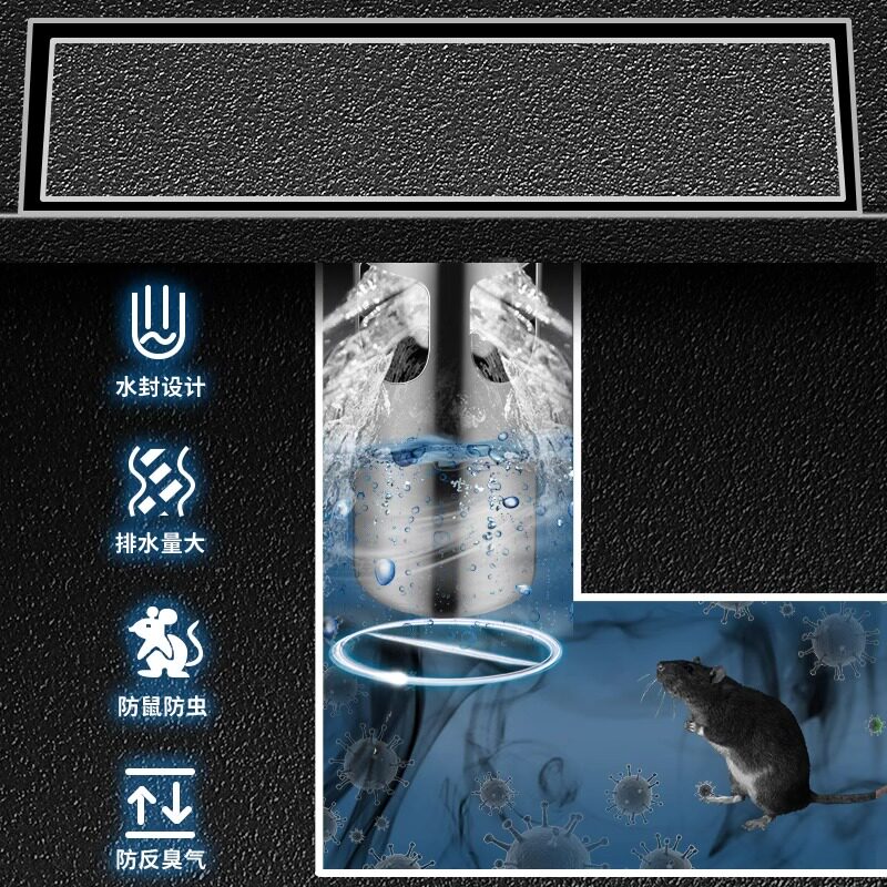 Strip bathroom floor drain 304 stainless steel deodorizer toilet special large drainage water hair filter 2005-Taobao