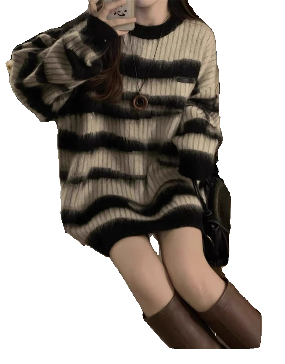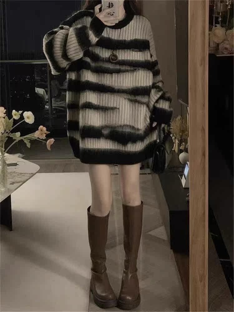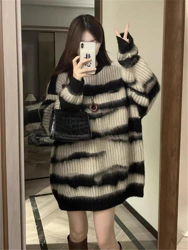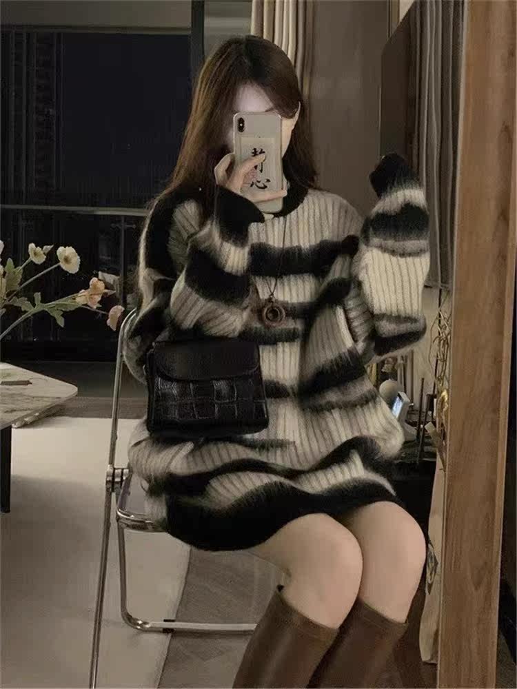 Day-series retro-spotted knitwear knitted sweaters women thicken winter extra-virgin loose with lazy wind design feel set on the head-Taobao