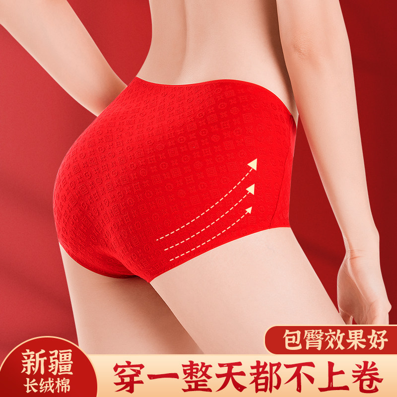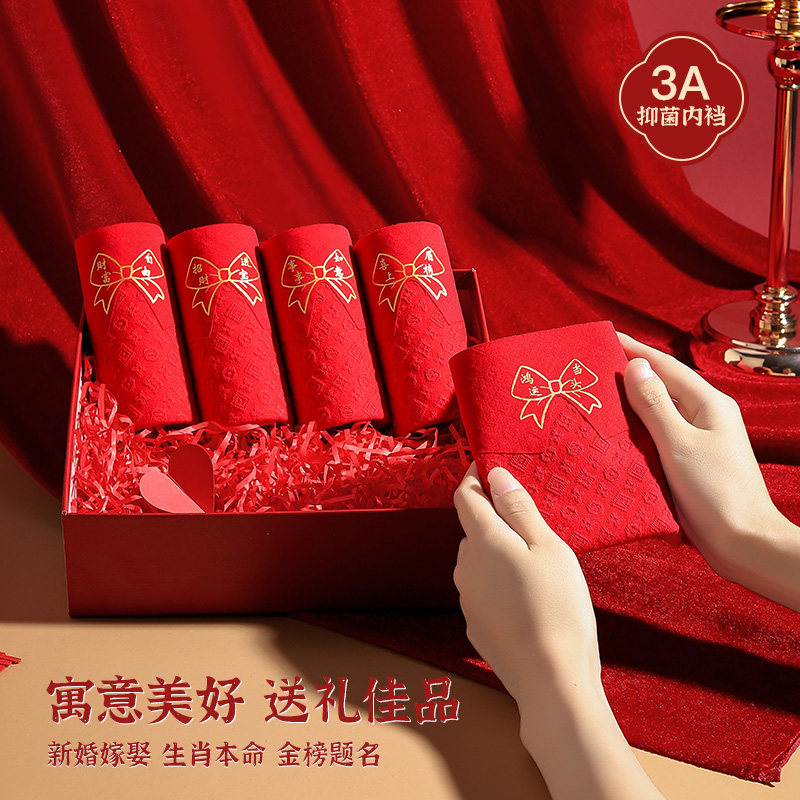 Cat man's life year big red briefs Ladies pure cotton antibacterial full cotton dragon year wedding New Year shorts 2023 new-Taobao