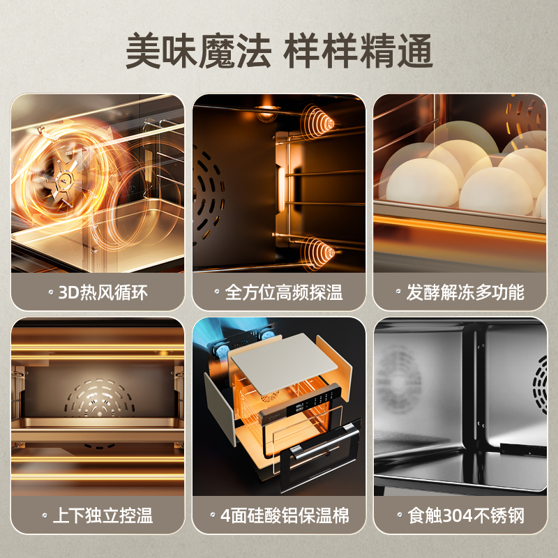 Thawing, pressure baking, air frying, low temperature fermentation, built-in lighting, sterilization, hot air circulation