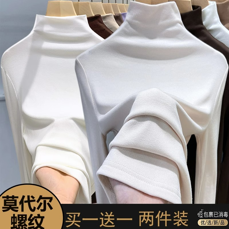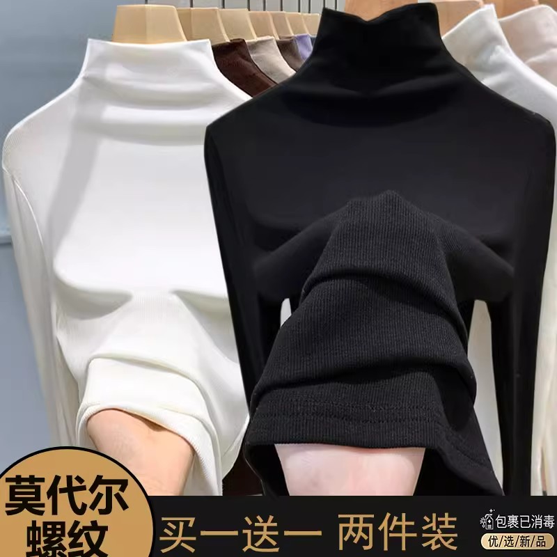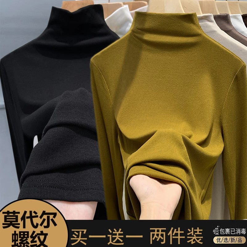 Modale semi-high collar bottom shirt woman pure color inner lap autumn winter fashion foreign air Han version 100 hitch to thicken long sleeve t-shirt-Taobao