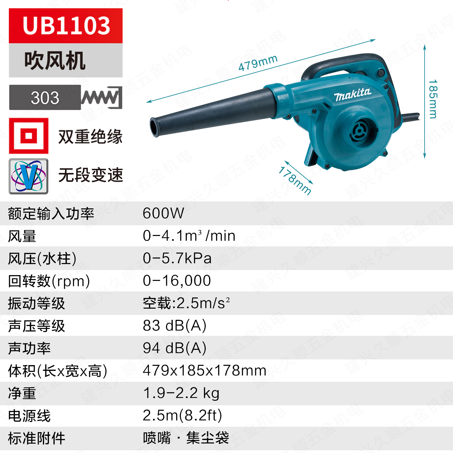 Pasta blower UB1103 AIR VOLUME ADJUSTMENT 600W BLOW SUCTION DUAL-USE UB1100 LITER GRADE Mighty Motor-Taobao