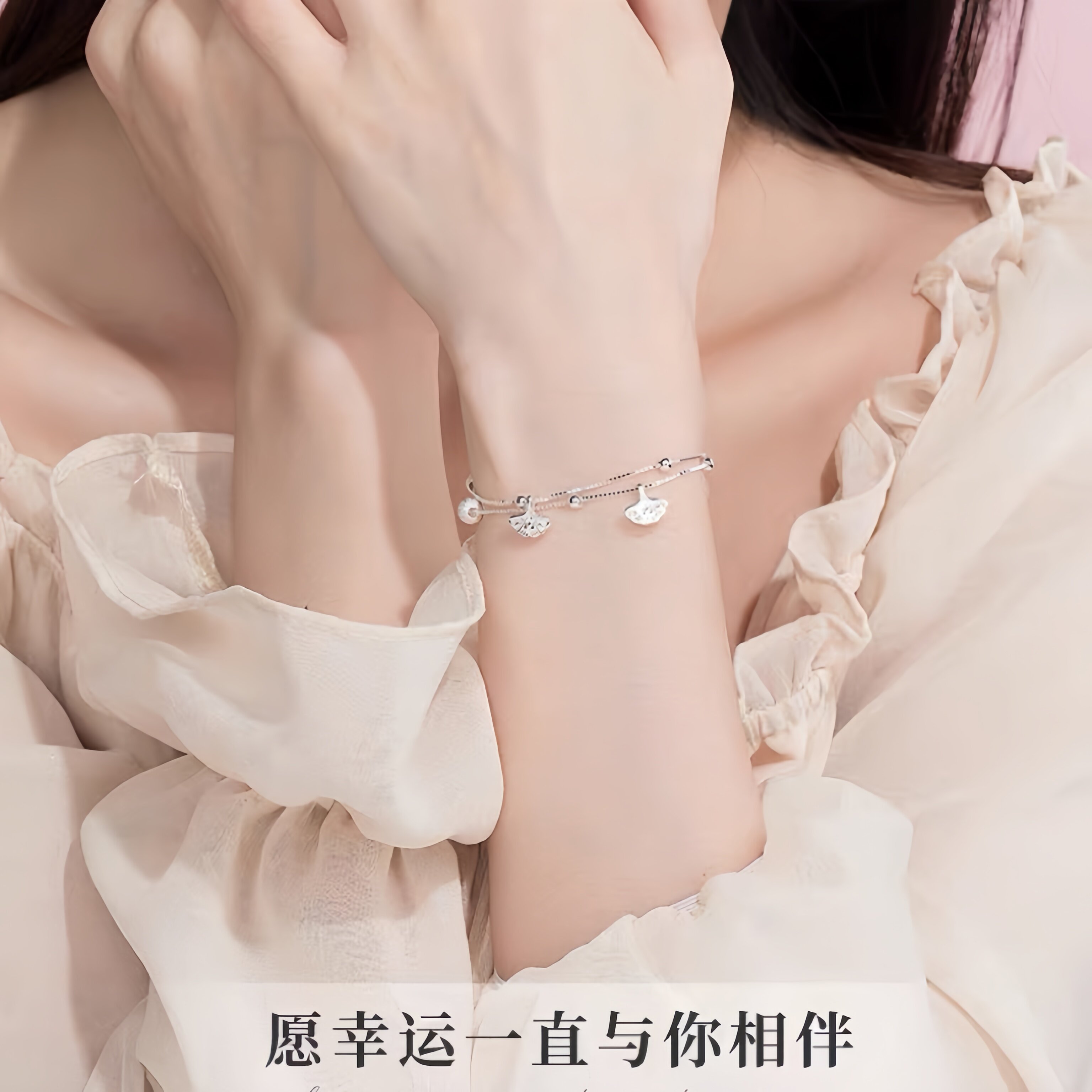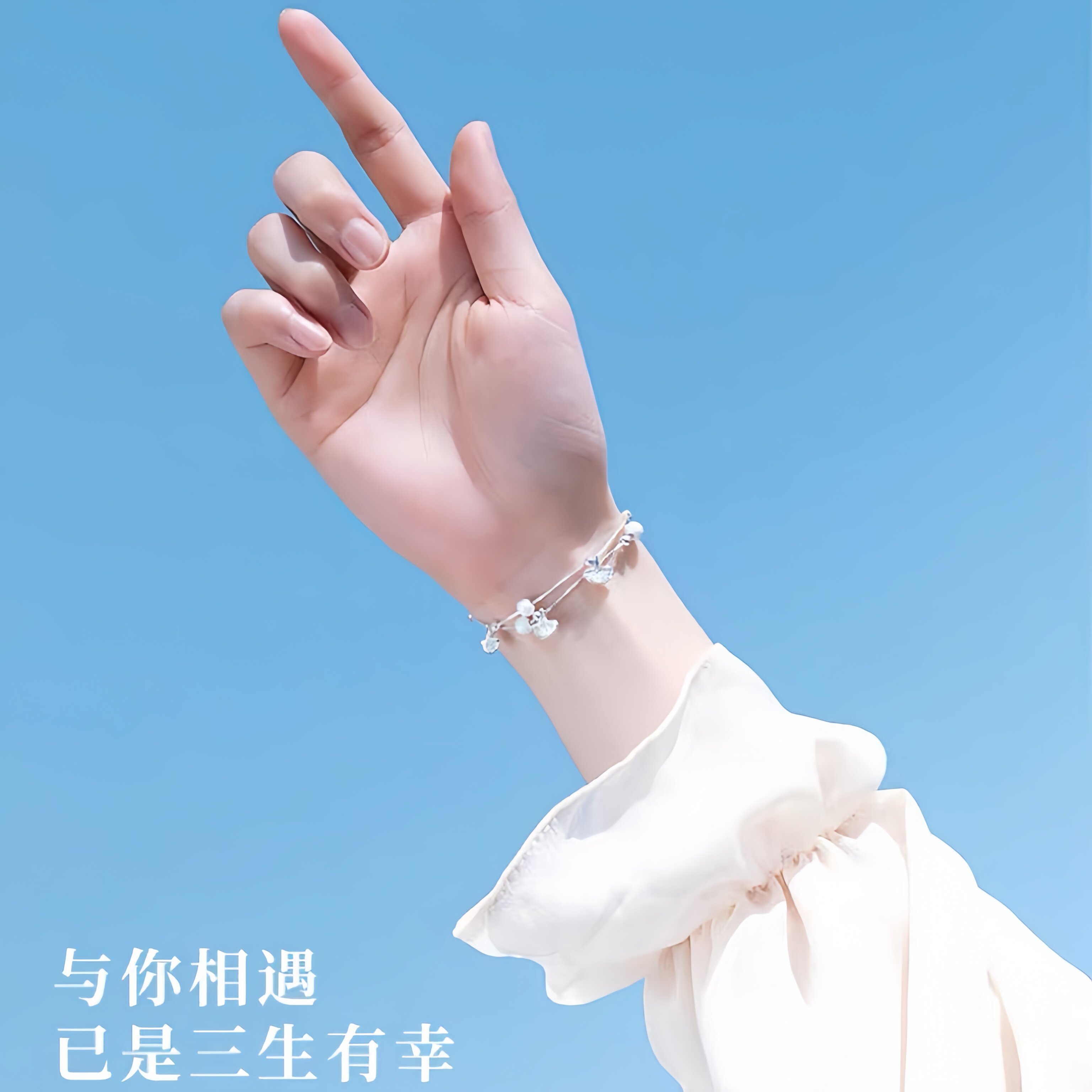 Three students lucky enough to be pure silver bracelet woman s999 foot silver young style Delicate Four-leaf Grass To Send Girlfriend Girlfriend's Birthday Gift-Taobao
