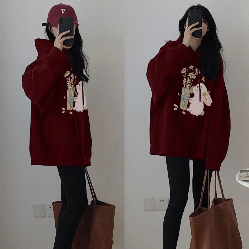 Qianqi pregnant women's clothing autumn and winter style small sub-long sleeves trendy even hat blouses bottom pants two sets of gushed suits-Taobao