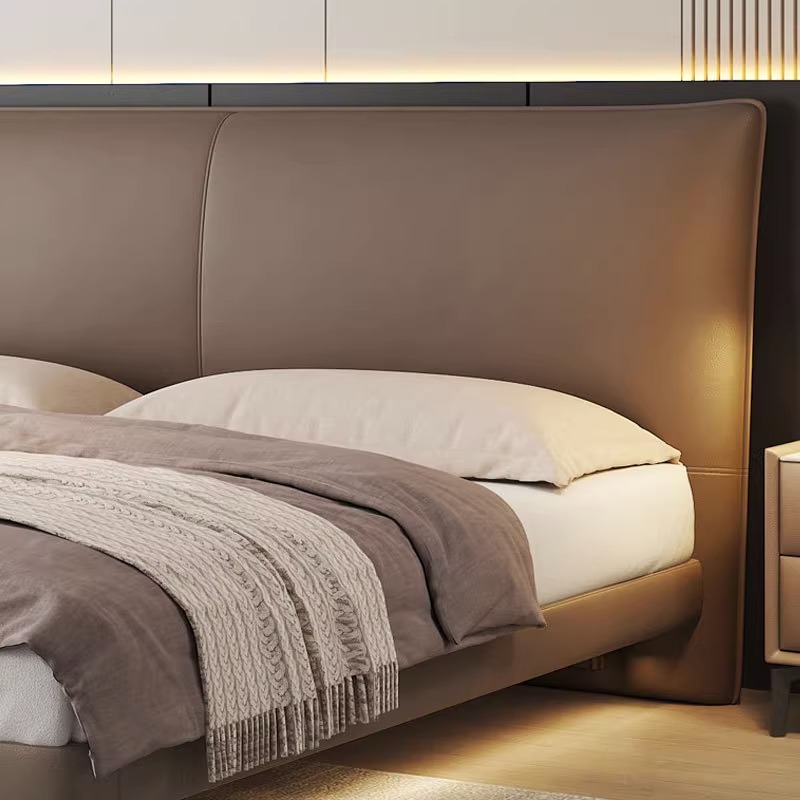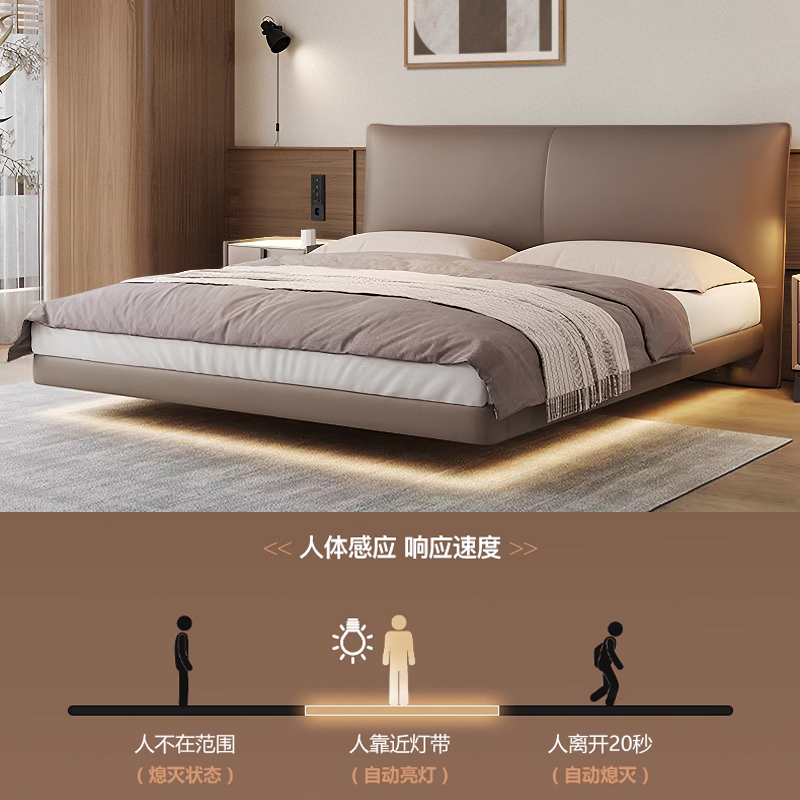 Napa Real Leather Bed Suspension With Lamp-Steel Wood Bed Nappa Leather Bed Head Cabinet * 1 Suspended With Lamp-Steel Wood Bed Nappa Leather Bed Head Cabinet * 2 Suspended With Lamp-Steel Wood Bed Board