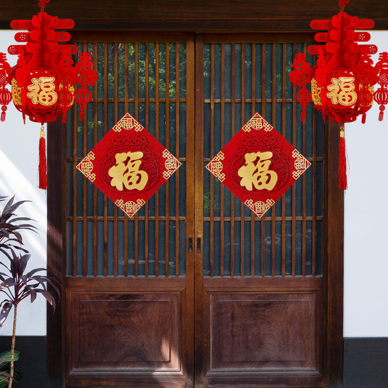 New Year's Day New Year's Day hanging decoration Palace Lantern Mall Interior Decoration Large Red Light Lantern Spring Fu Characters Spring Festival Arrangement Supplies Supermarket-Taobao