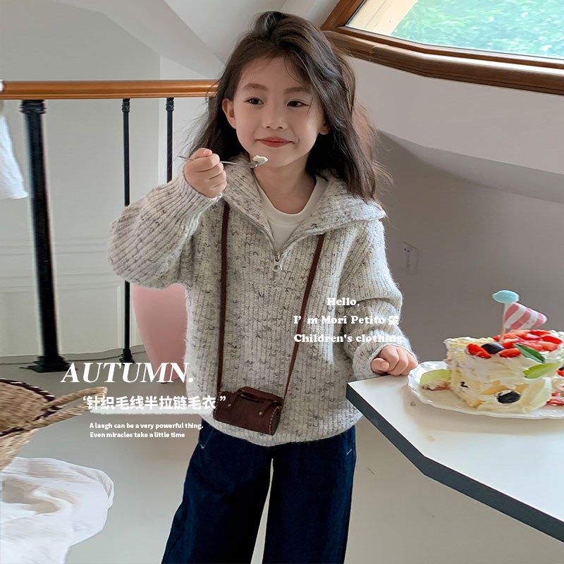 Pro-sub-loaded sweater knit pick-up point Blended Knit Blouse Baby Turned Polo Coat Polo Coat 2023 Autumn Winter-Taobao