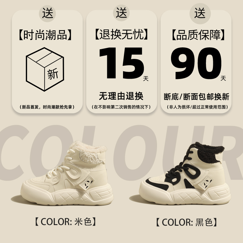 BEIXIN ESTATE TEA ~ Anti-cold and thick snow ground boots female winter heightening and thickening of high helper cotton shoes-Taobao
