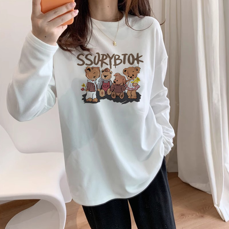 White long sleeve t-shirt pure cotton loose gush with undershirt woman inside lap big code blouse autumn new women's dress-Taobao