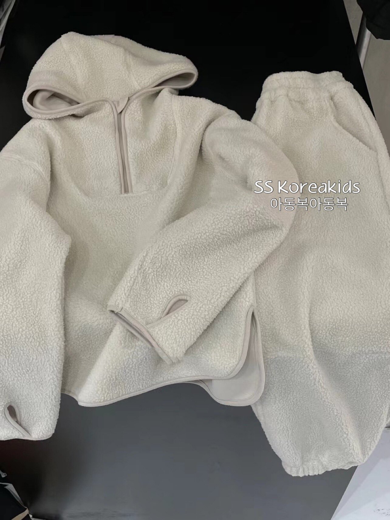 Pola Bora South Korean boy's clothing handsome boy sports suit 2023 Winter rocking grain suede sweatshirt Two sets-Taobao