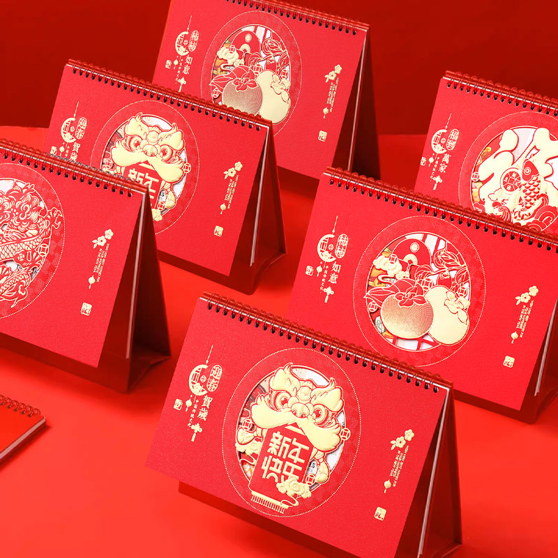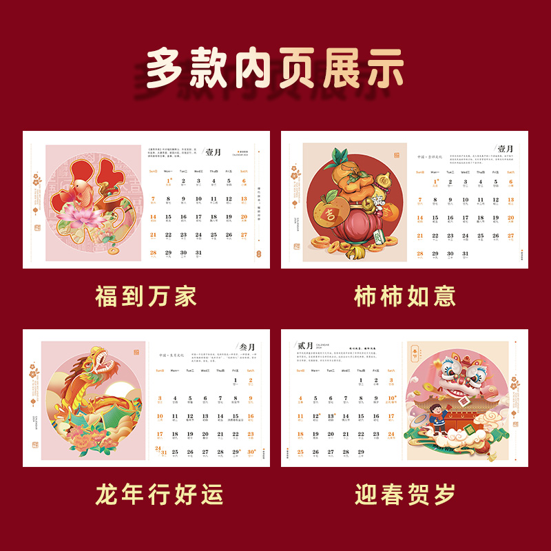 2024 Desk Calendar Custom Special Big China Red Red Enterprise Gift Booking Triangle Desk Calendar Production Calendar Festive Business Desk Calendar 2023 Desktop Creative Lunar Calendar Dragon Year New Set-Taoba