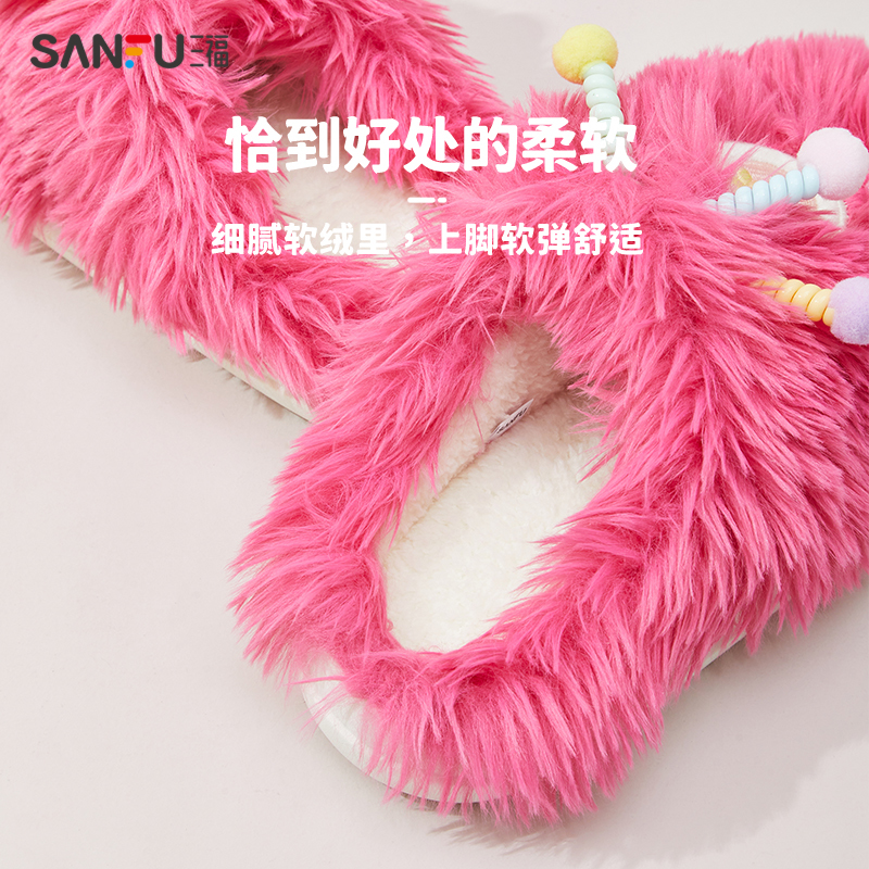 Sanfu Women's Twist Twist Stick Little Monster half-pack Fun Plush daily Home Wearing Slippers 825932-Taobao