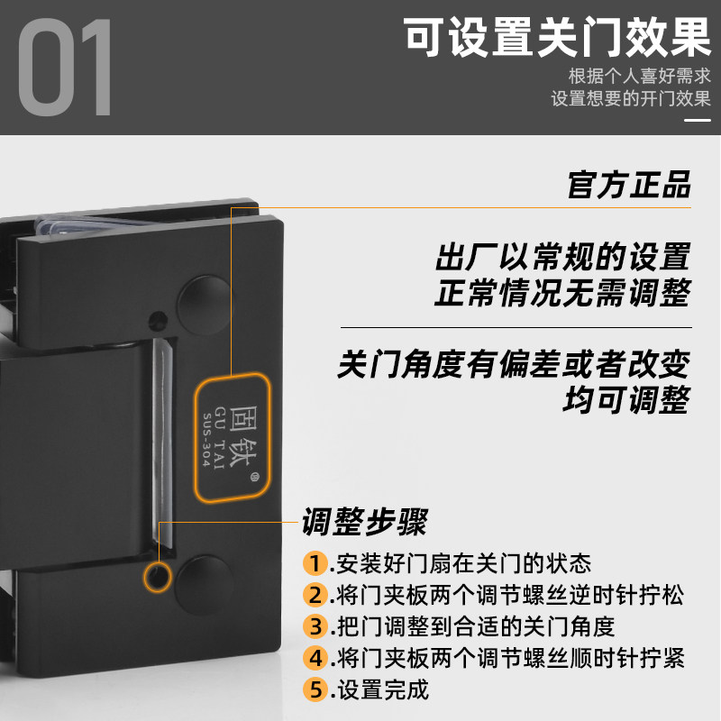 304 stainless steel glass door hinge hydraulic buffer type bathroom clamp office partition shower room hinge black-Taobao