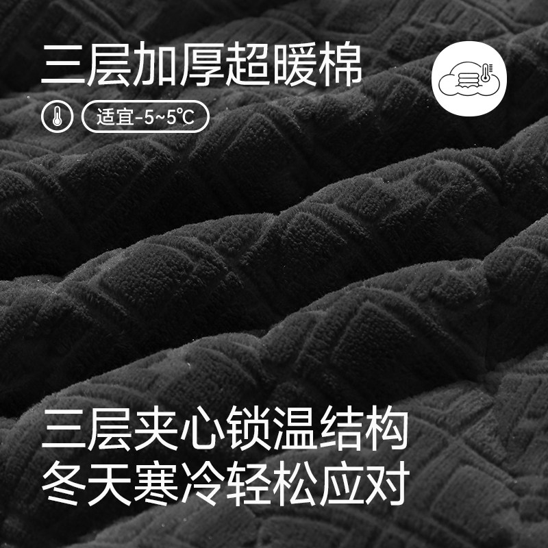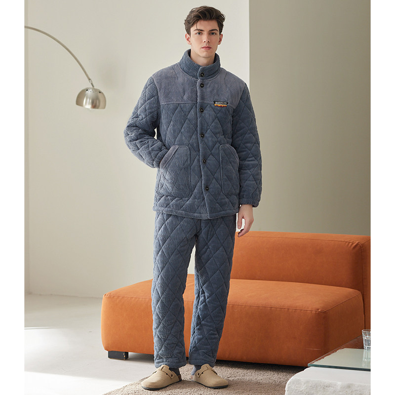 Fentem Pajamas Male Winter Coral Suede Triple thickened clip cotton padded jacket with velvety suit anti-static increase in yard clothing