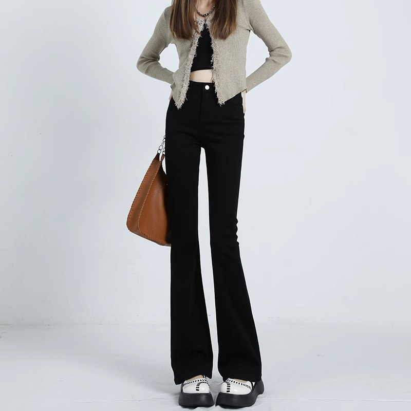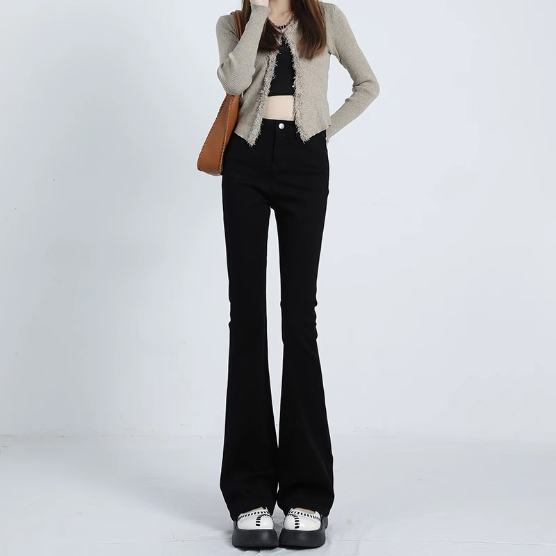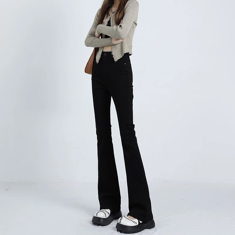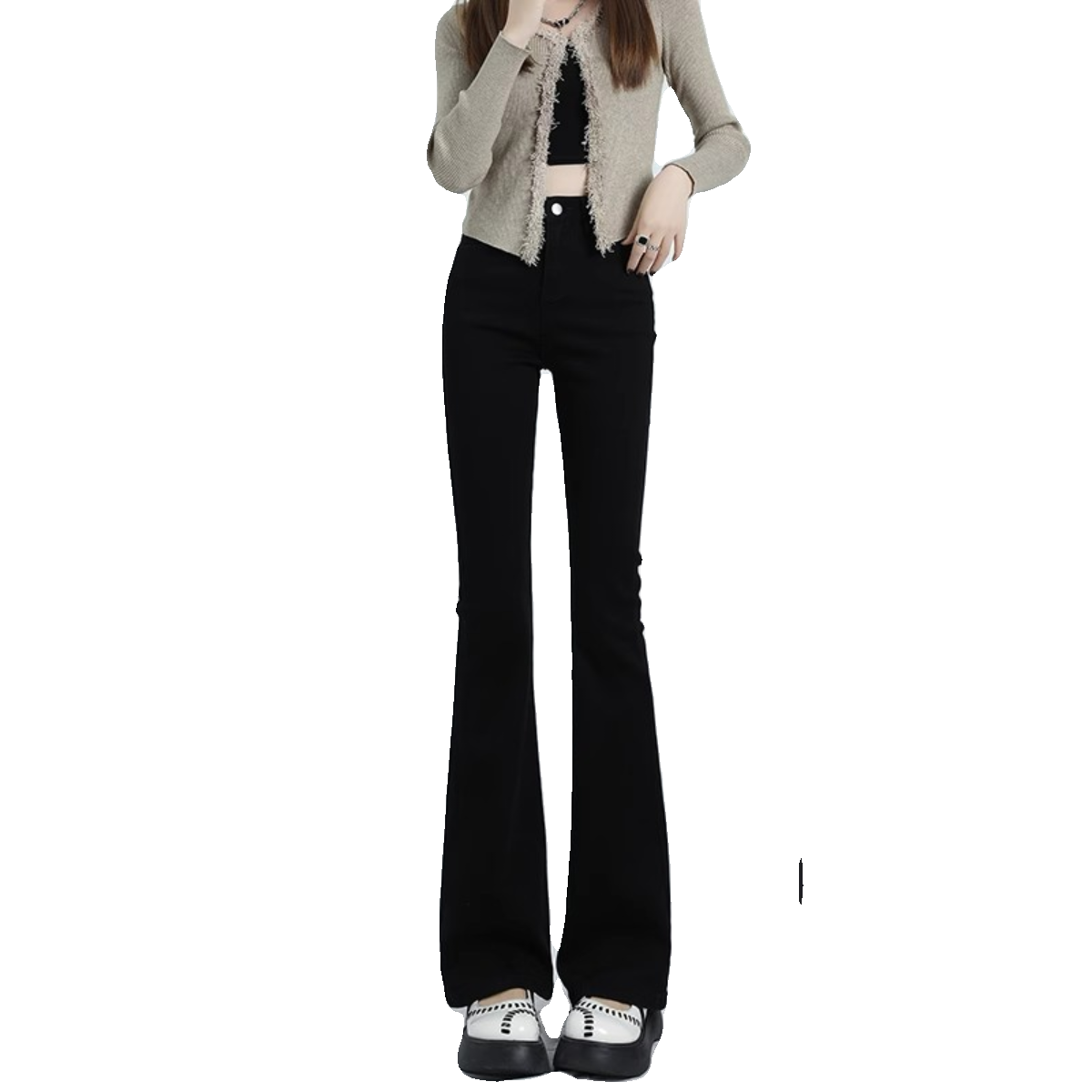 Black micro-speaker pants woman slim fit small height waist trumpeter pants with slim retro horseshoe pants spring and autumn-Taobao