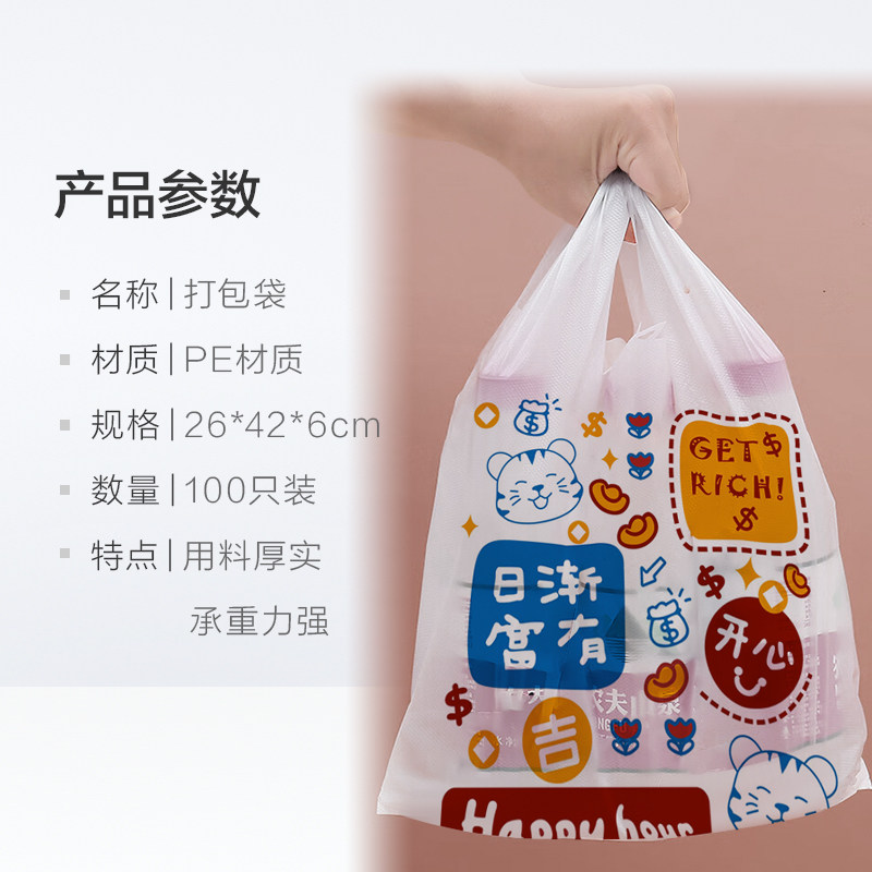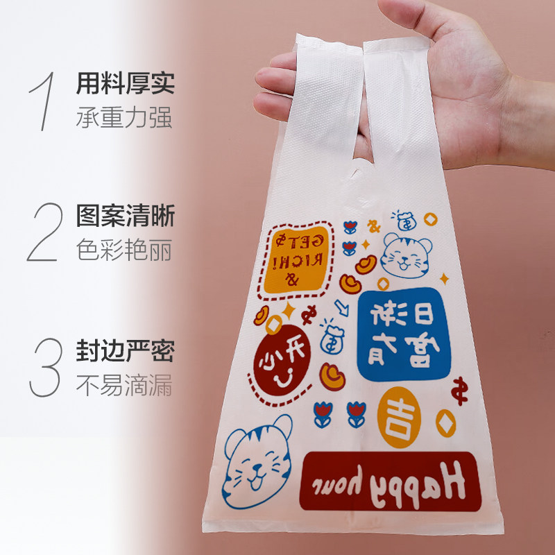 Plastic bag disposable garbage bag commercial white thickened food bag packaged takeaway bag cartoon 100 only-Taobao