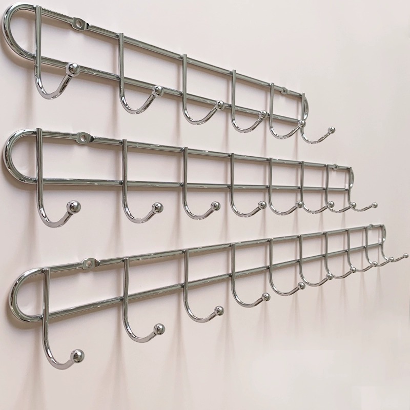 Hook wall-mounted wall door rear cloak hook perforated row of strip kitchen metal row hook stainless steel patch adhesive hook-Taobao