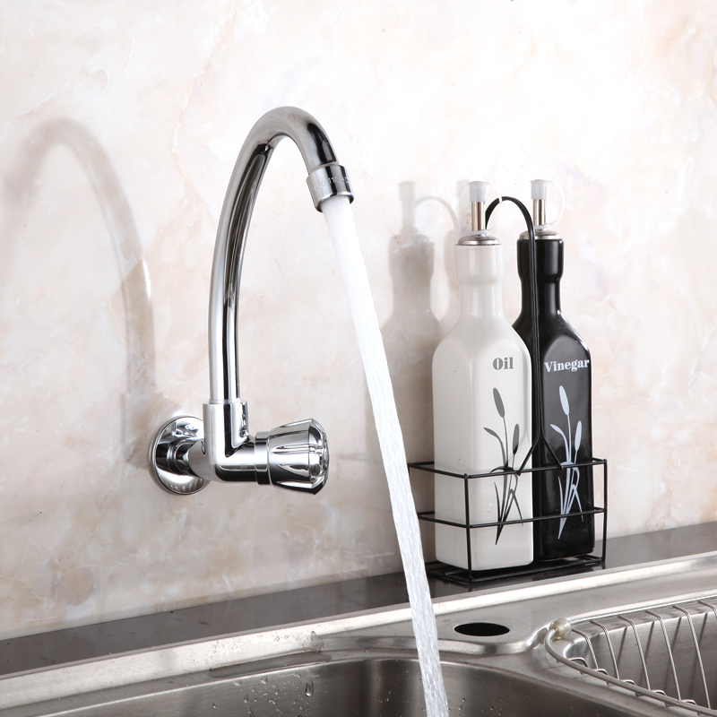 All-copper-in-wall type tap single-hole single chilling kitchen into wall-out tap Balcony Washing basin sink swivel 3143-Taobao