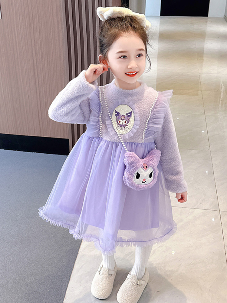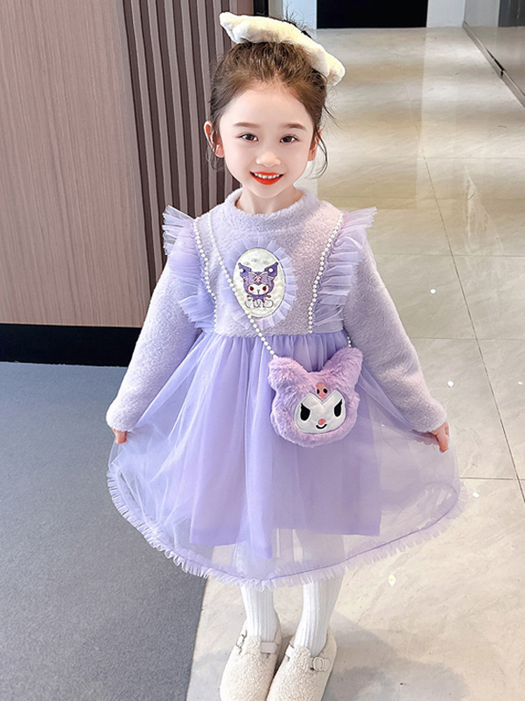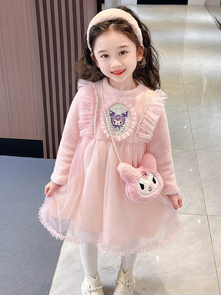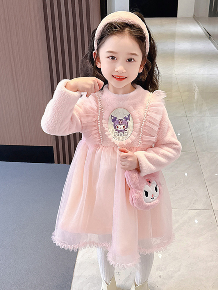 Girls' style princess plus velvet autumn and winter dress baby girl 2024 new mesh skirt thickened winter dress trendy