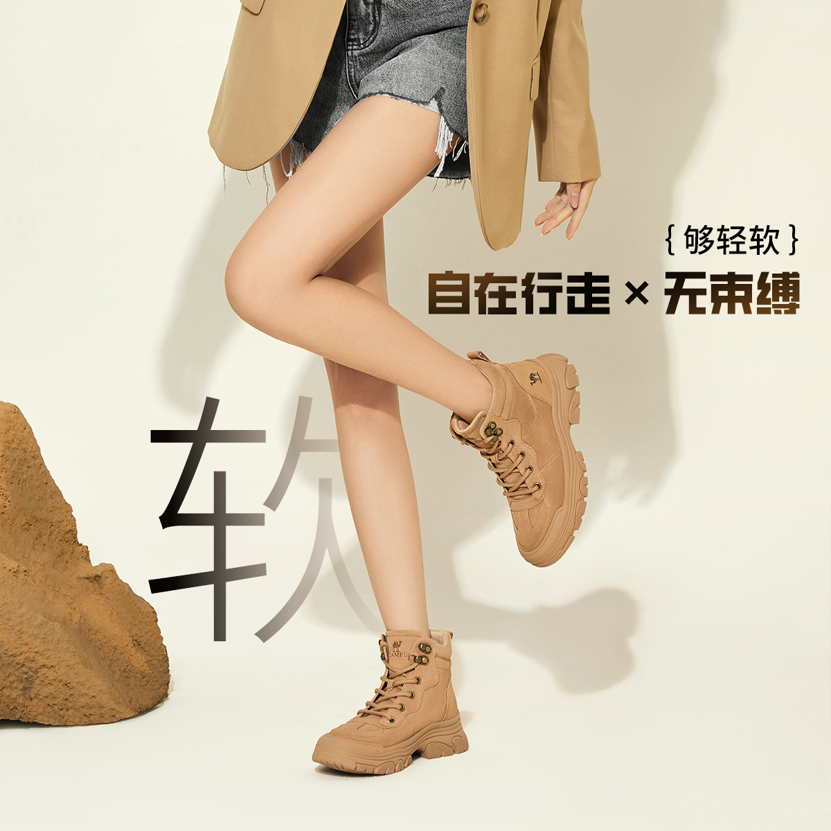 Camel Outdoor Women Shoes 2023 Winter New Martin Boots Frock Boots Thick Underwind 100 Hitch Casual Short Boots-Taobao