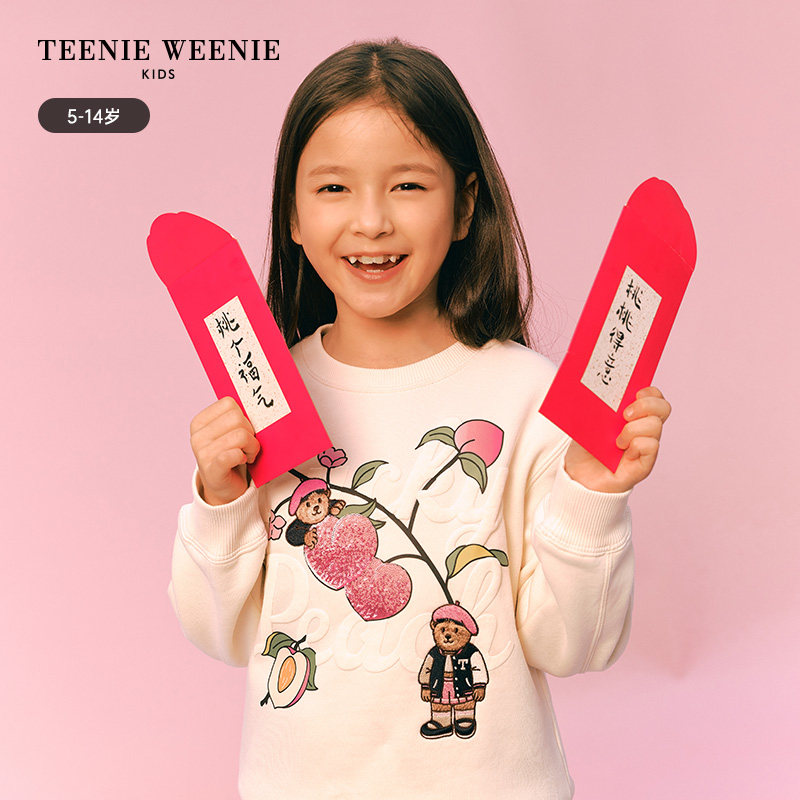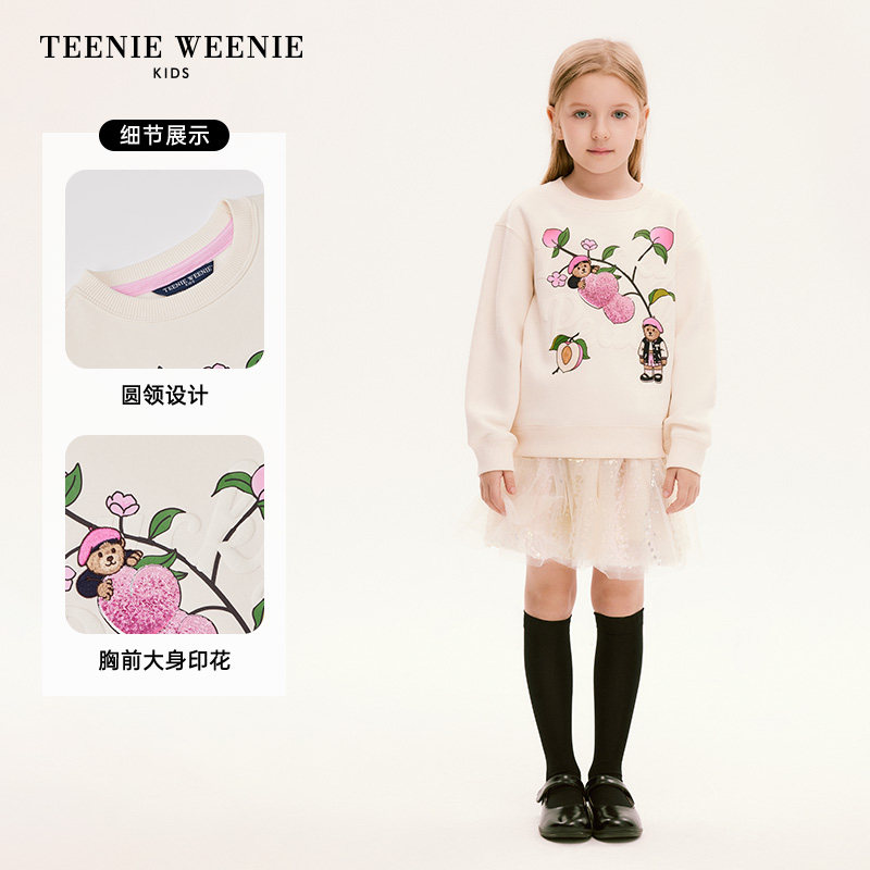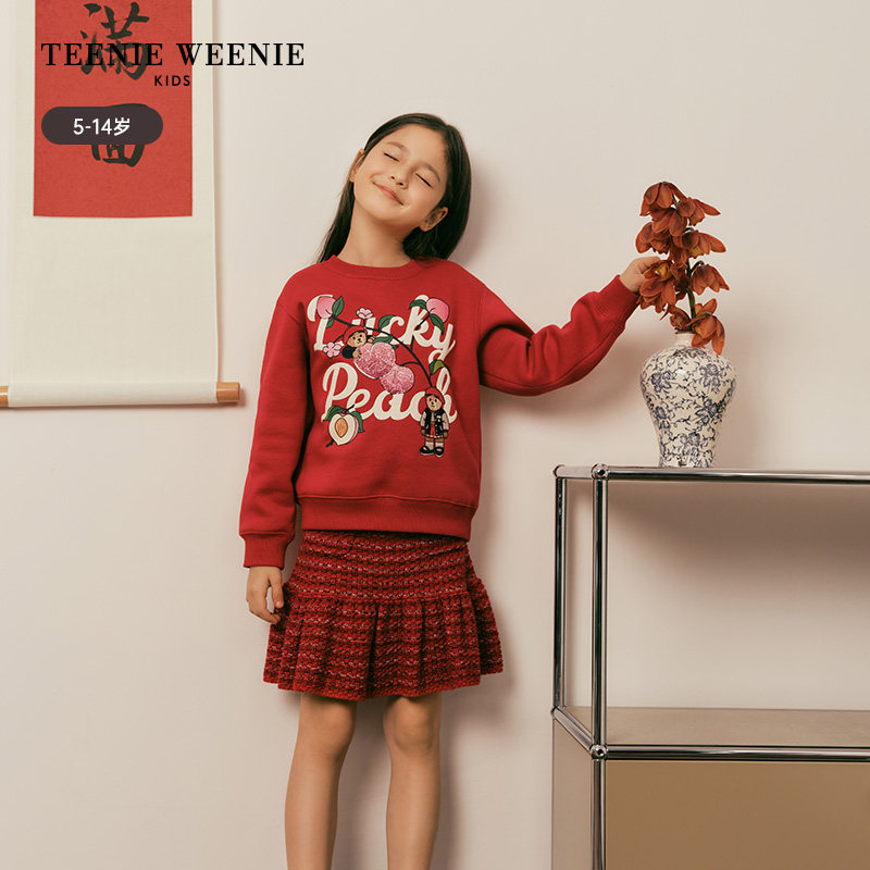 TeenieWeenie Kids Little Bear Children's dress 24 spring new girl red plus suede printed sweatshirt-Taobao