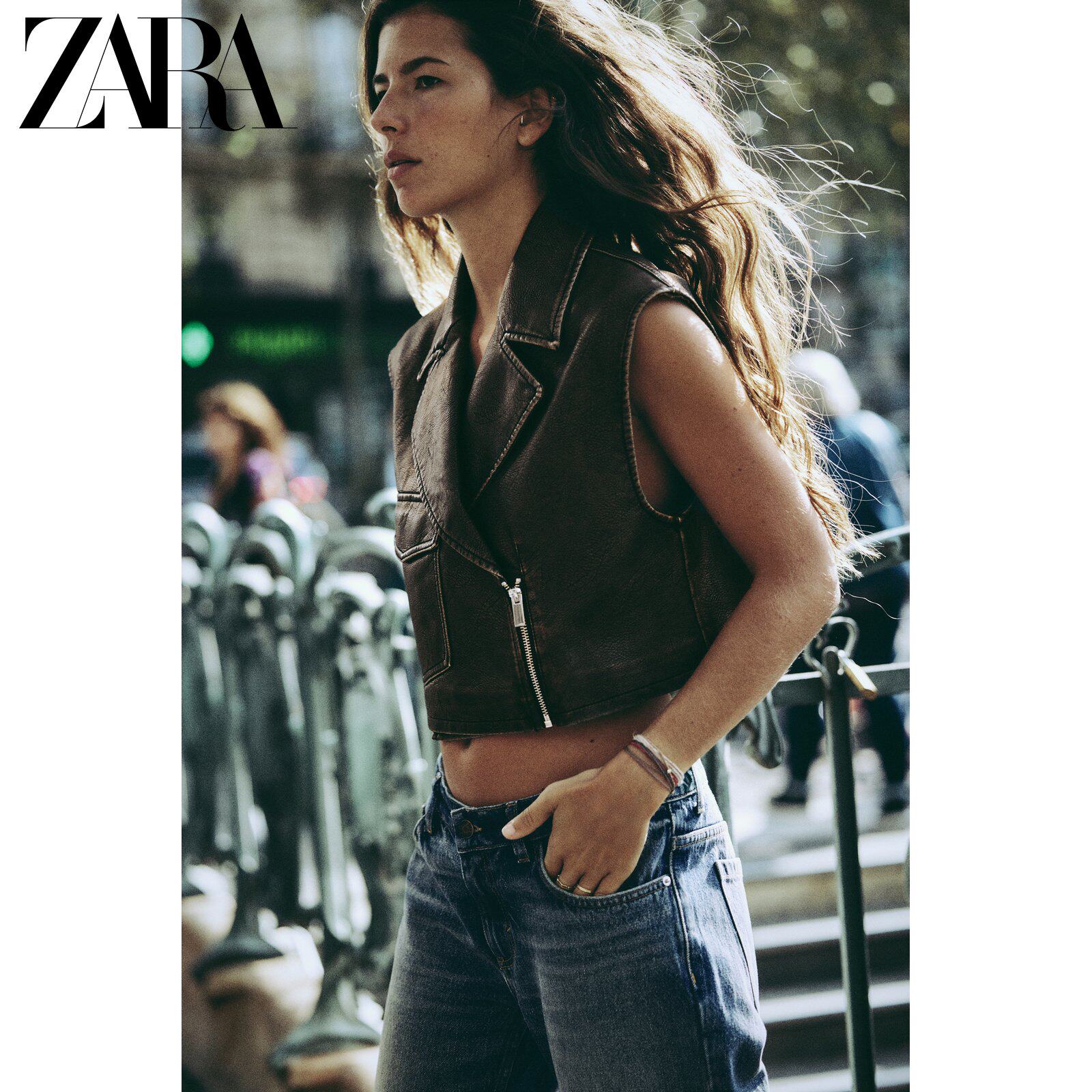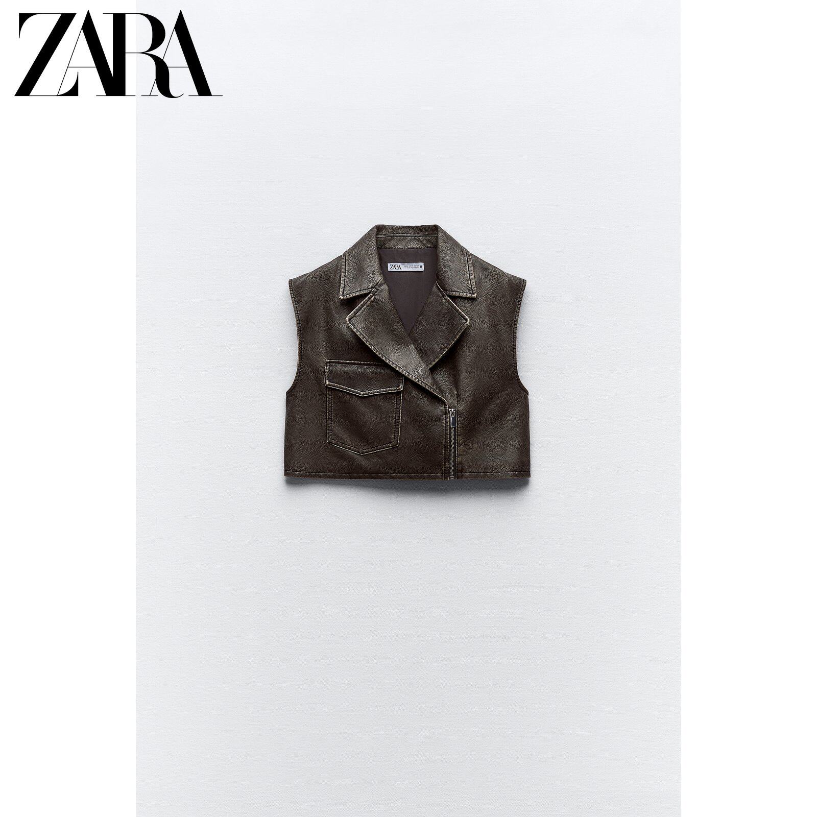 ZARA Discount Season Women's Dress Black Turned Collar Without Cuff Imitation Leather Short Vest Waistcoat 2949229800-Taobao