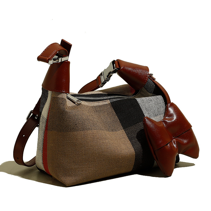 AJ MECICA European and American fashion Genuine Leather Skew Satchel New Tote Bag Upscale Plaid Canvas Pet Backpack Woman-Taobao