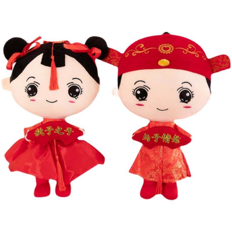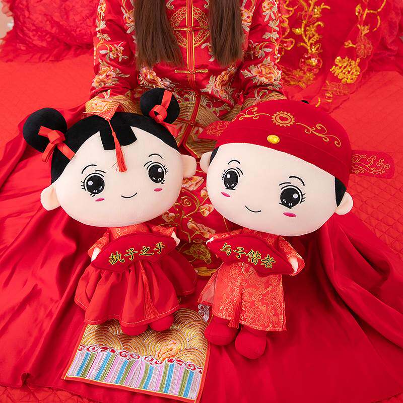 Creative Wedding Press-Bed Dolls A Pair Of Chinese Plush Paparazzi Joy Dolls High-end Bedside Swing Pieces Wedding items-Taobao