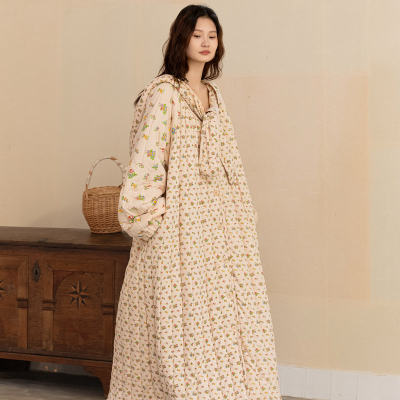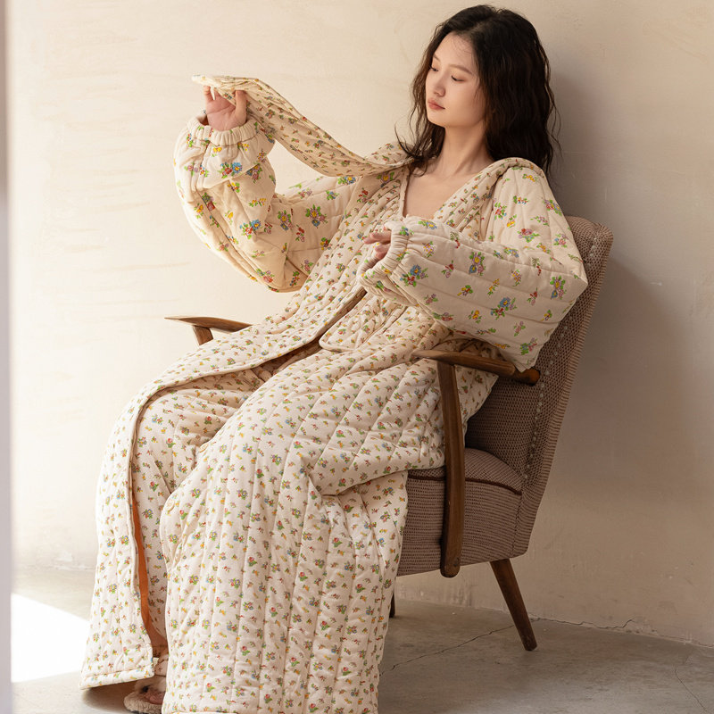 Sleeping Robes Lady Autumn Winter Long style Three layers clip cotton padded jacket thickened warm pajamas small crushed flower bathrobe pajamas pyjamas-Taobao